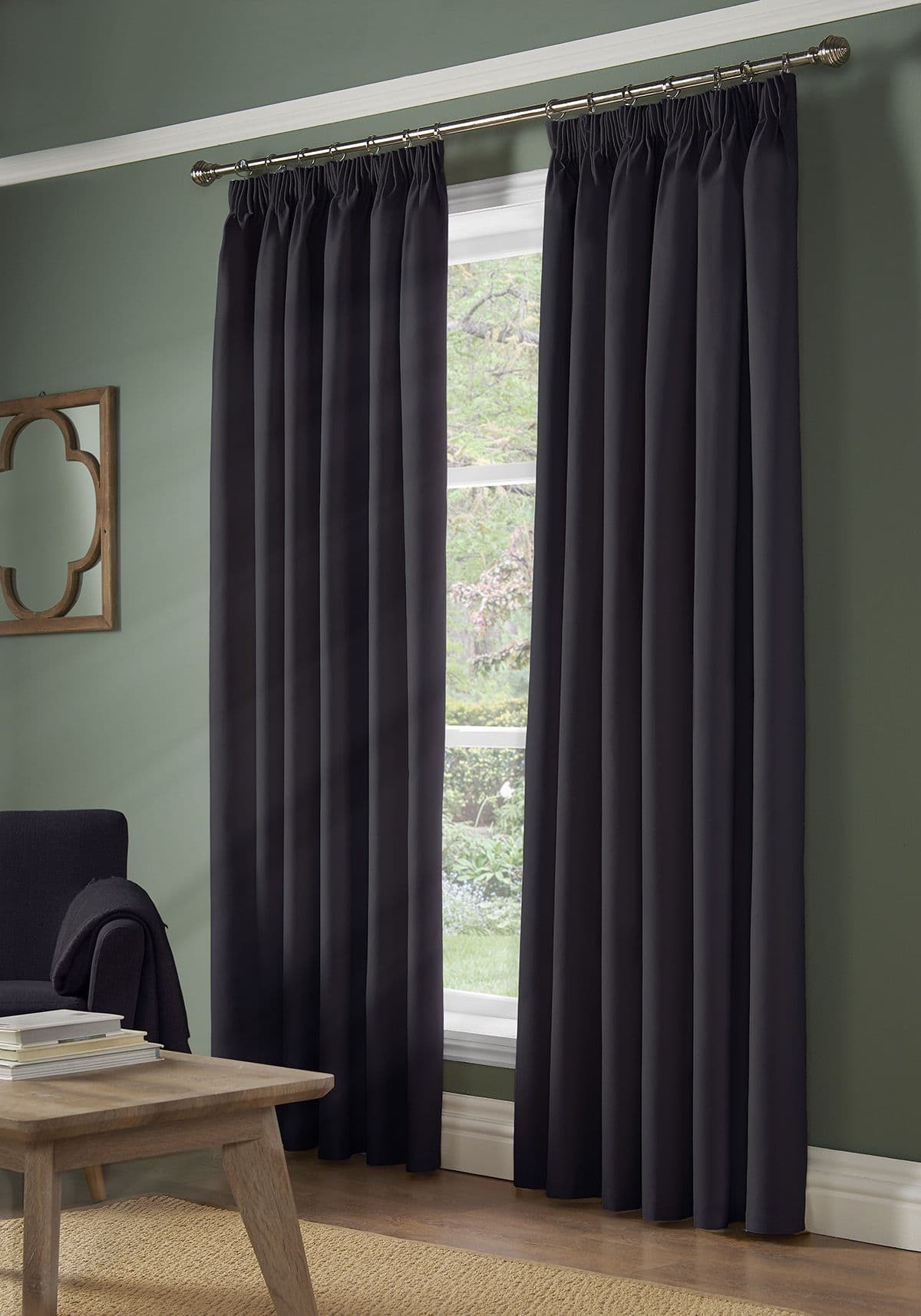 The Alan Symonds 95% Blackout Charcoal pencil pleat curtains are thermal efficient with a plain design, sold in 7 stylish colours.
