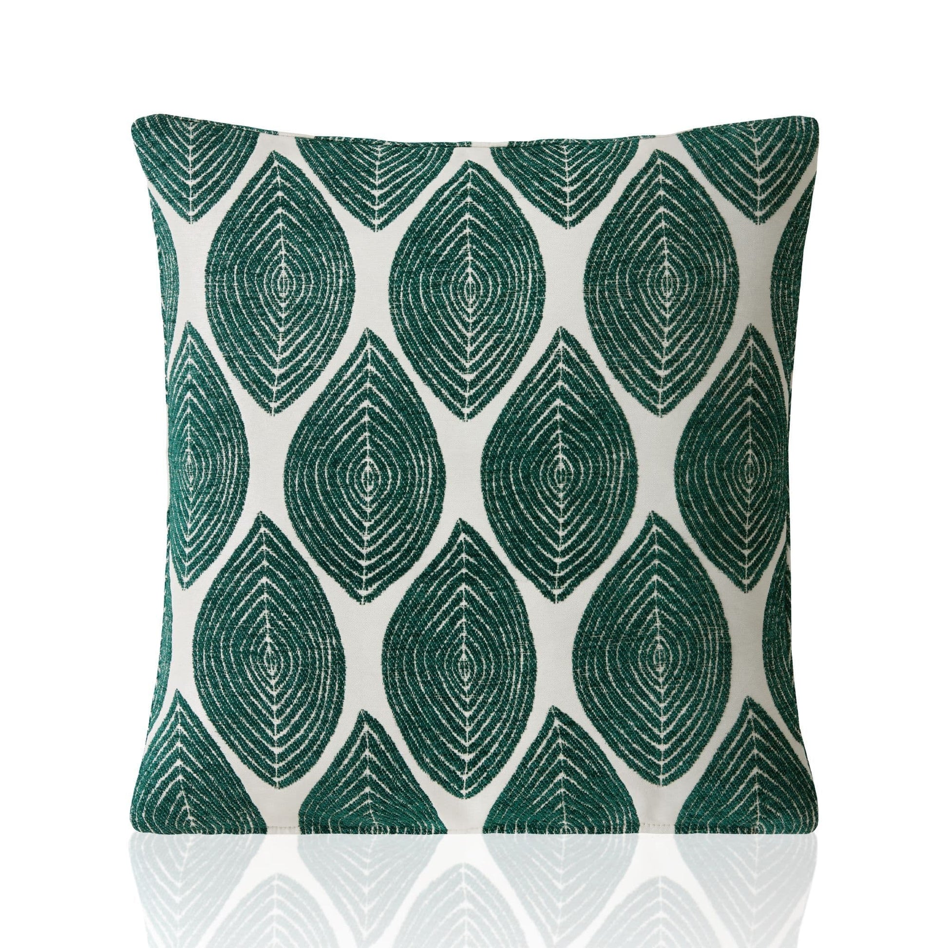 The Alan Symonds Bliss filled cushion in Jungle Green features a design of geometric leaves in a rich chenille fabric.