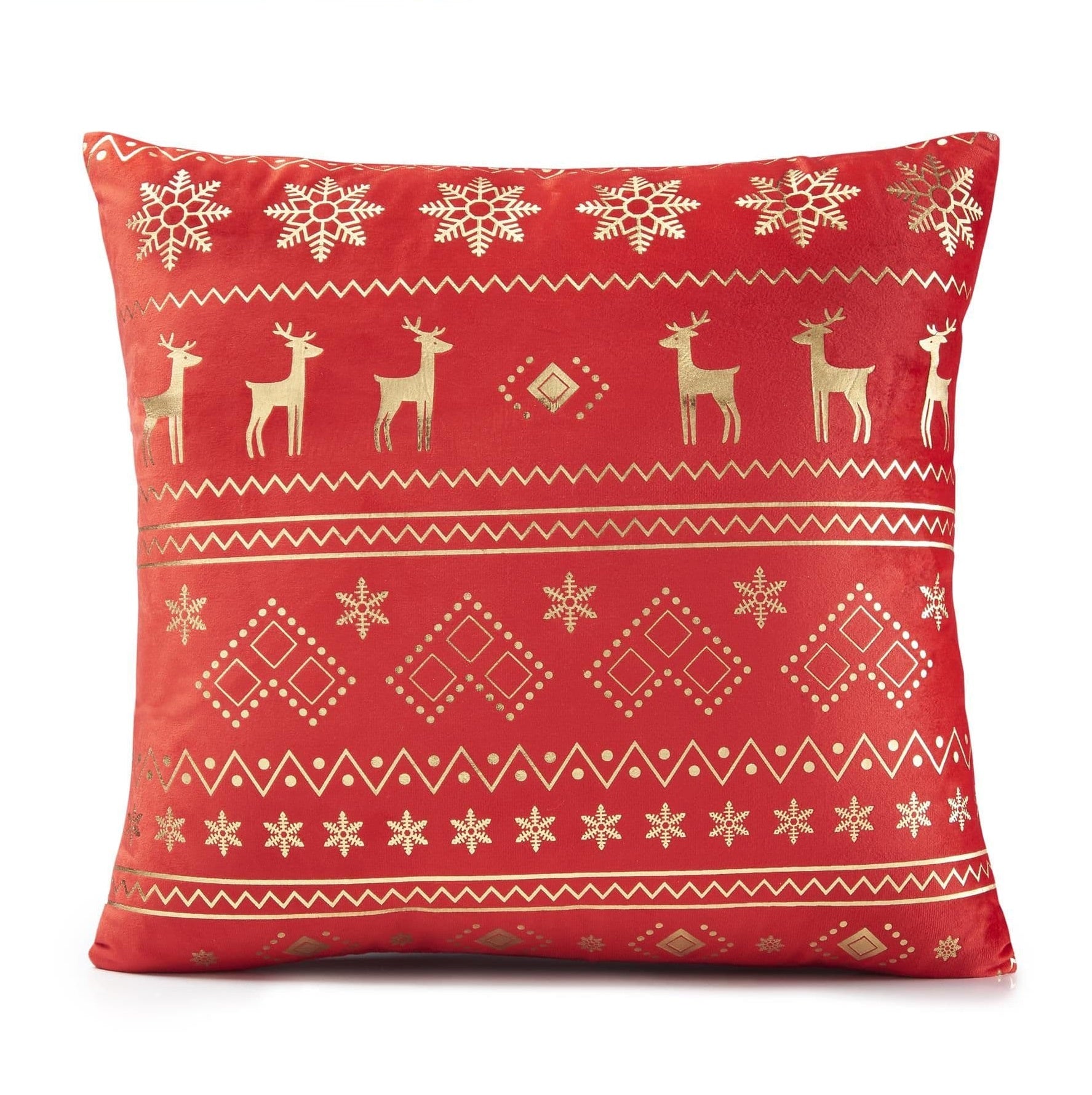 The Alan Symonds Christmas Velvet Reindeer Red/Gold filled cushion features a delightful, festive design printed on soft, velvet fabric.
