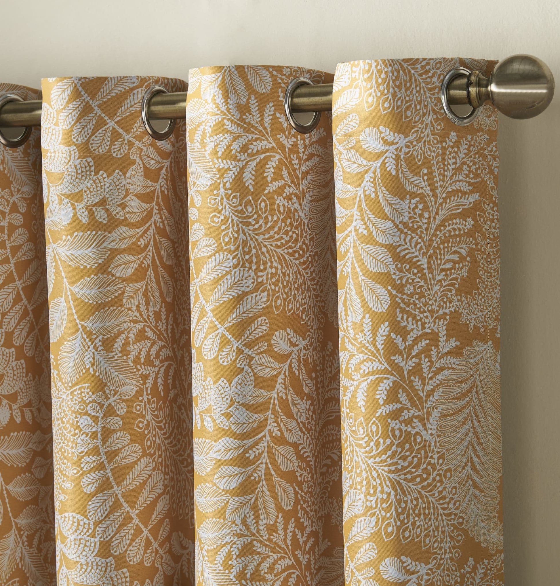 The Alan Symonds Ferndown Ochre eyelet curtains are thermal efficient with a printed floral design.