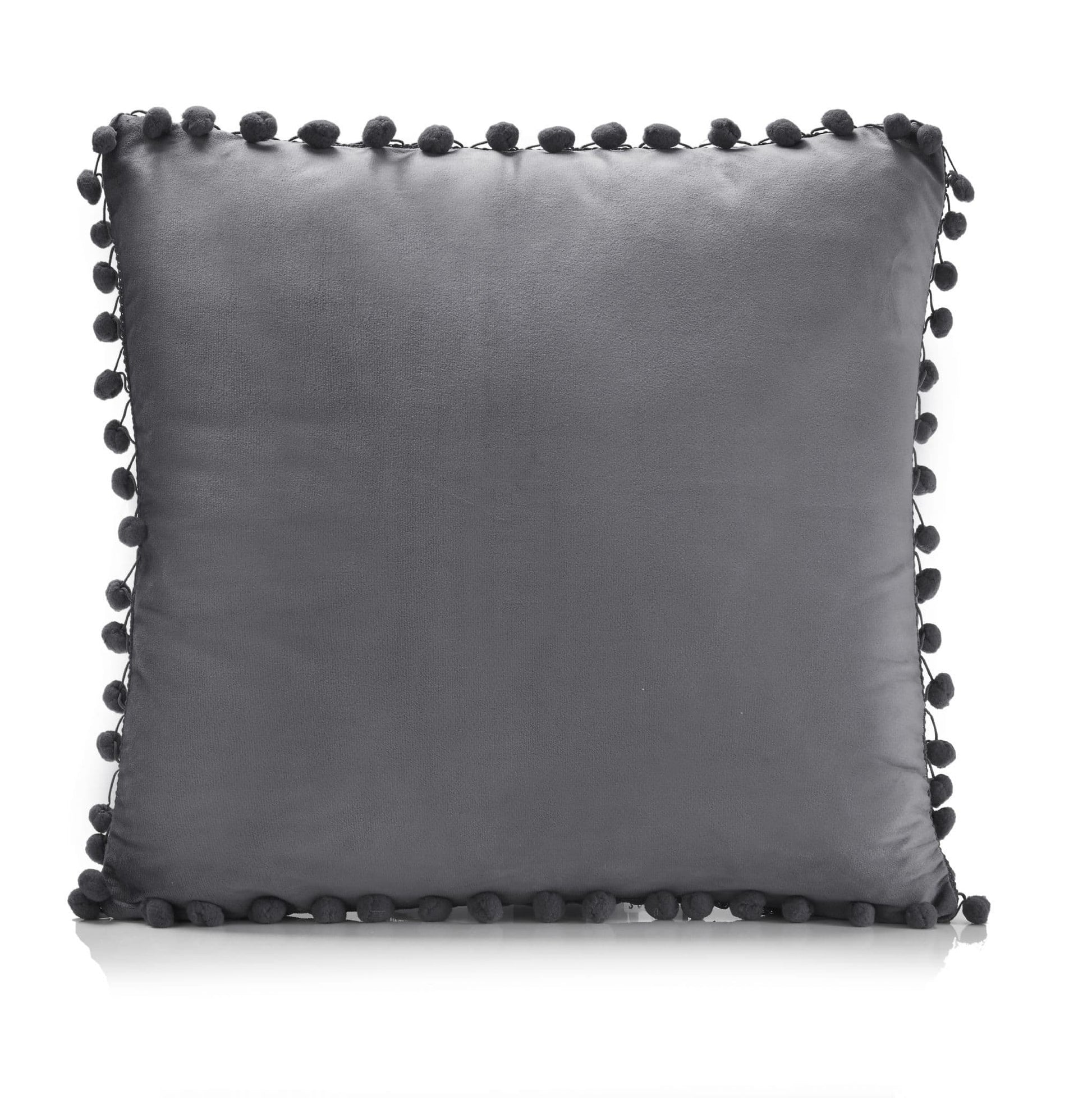 The Alan Symonds Poms filled cushion in Charcoal features a pom-pom edged plain design in a super-soft velvet fabric.