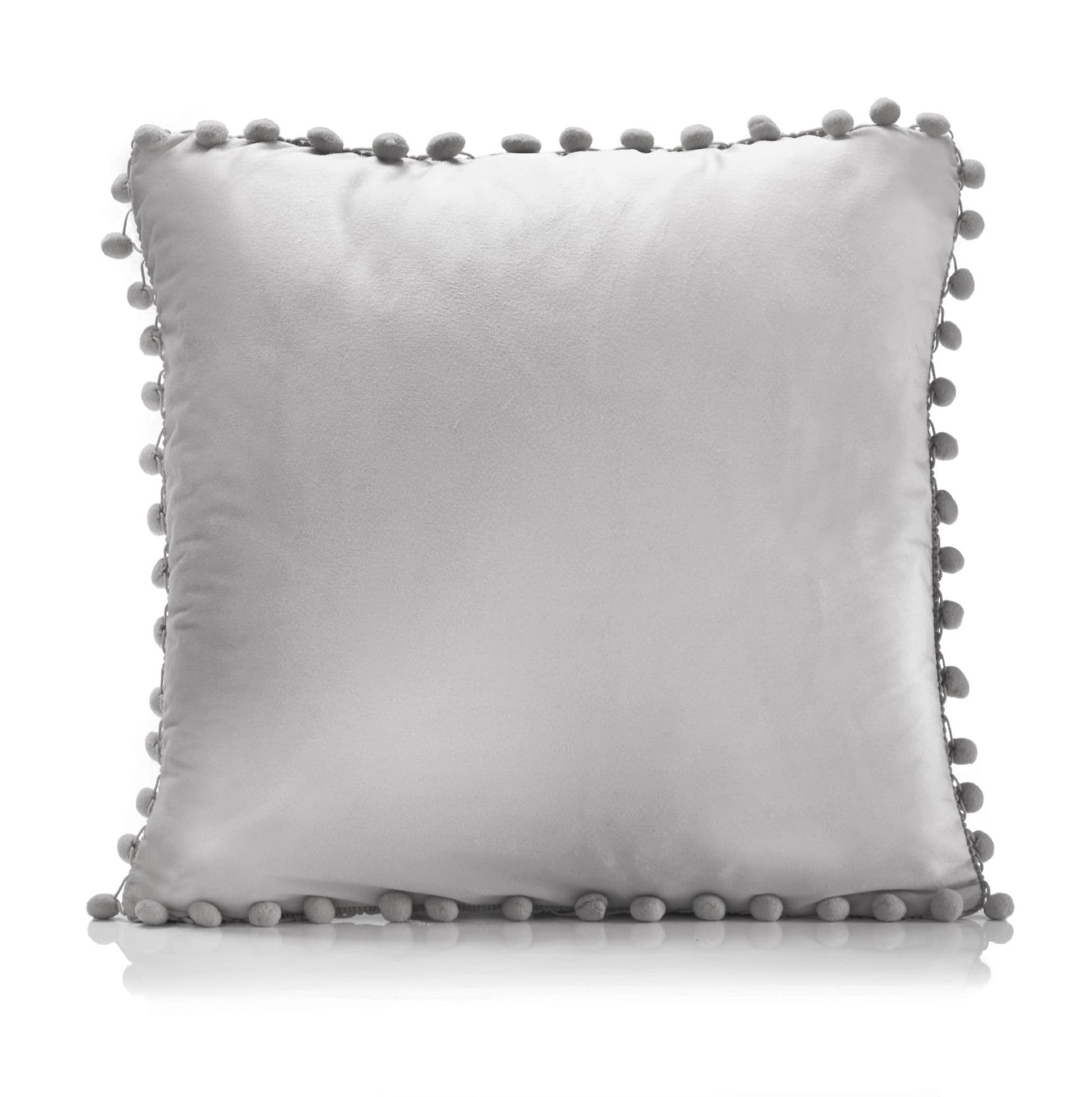 The Alan Symonds Poms filled cushion in Silver features a pom-pom edged plain design in a super-soft velvet fabric.