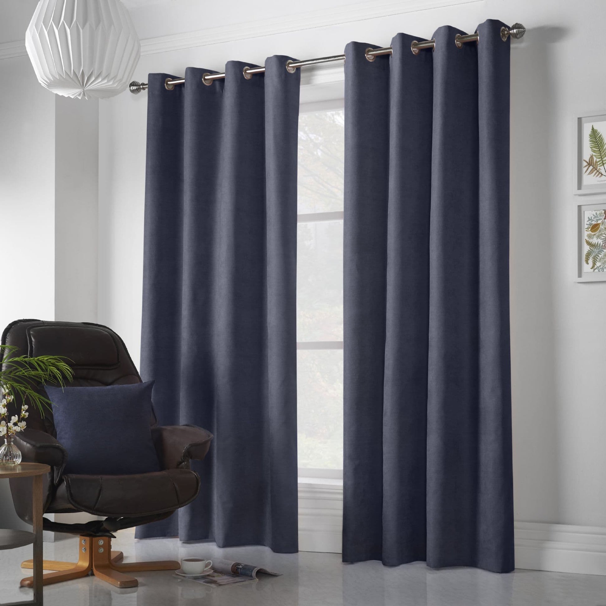 Alan Symonds Velvet Chenille Eyelet Curtains - Navy