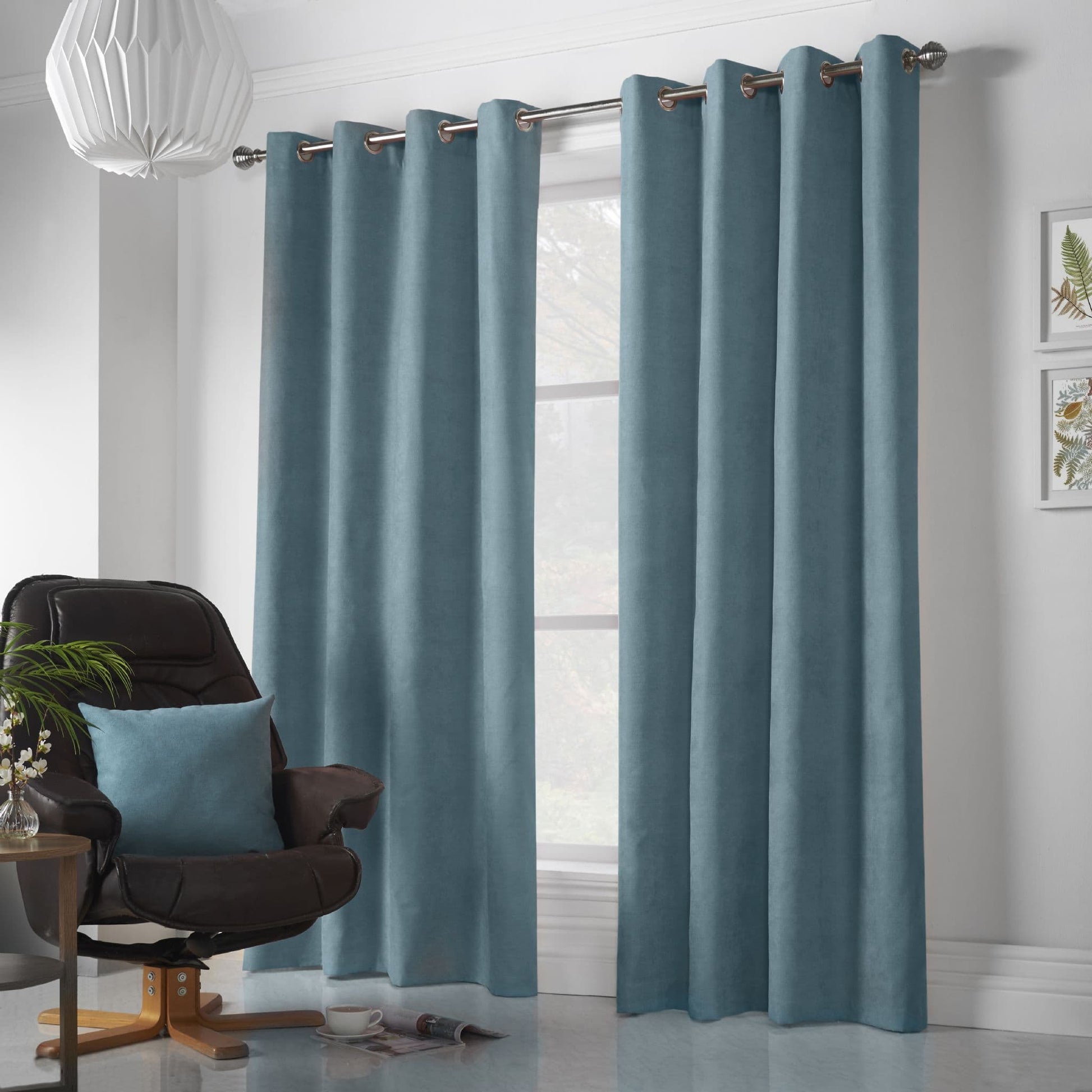 The Alan Symonds Velvet Chenille Teal eyelet curtains are available in 14 colours with a stylish plain design.