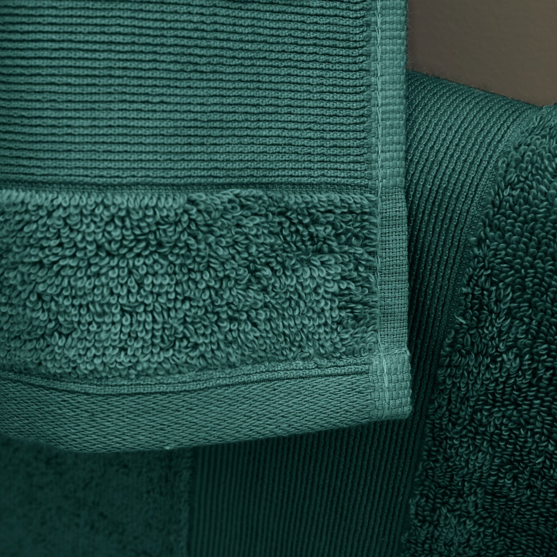 The Catherine Lansfield Anti-Bacterial bath towels in Forest Green are soft to the touch, super absorbent and feature a subtle banded detail.