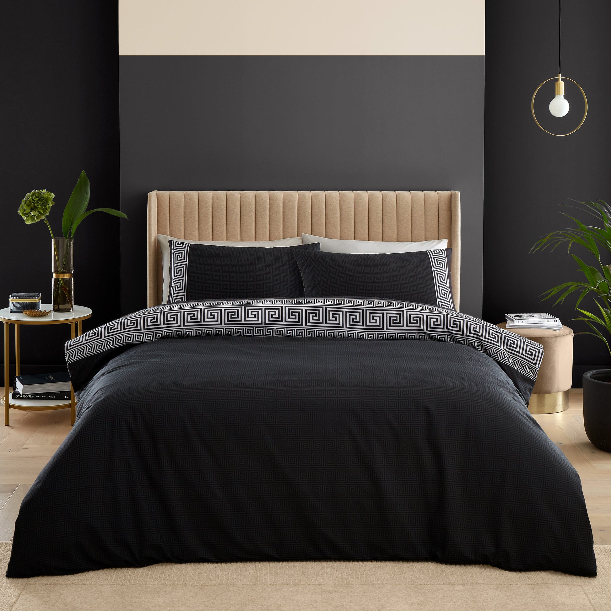 The Catherine Lansfield Artemis Greek Key Black makes a statement in your bedroom with this timeless linear Greek key motif design.