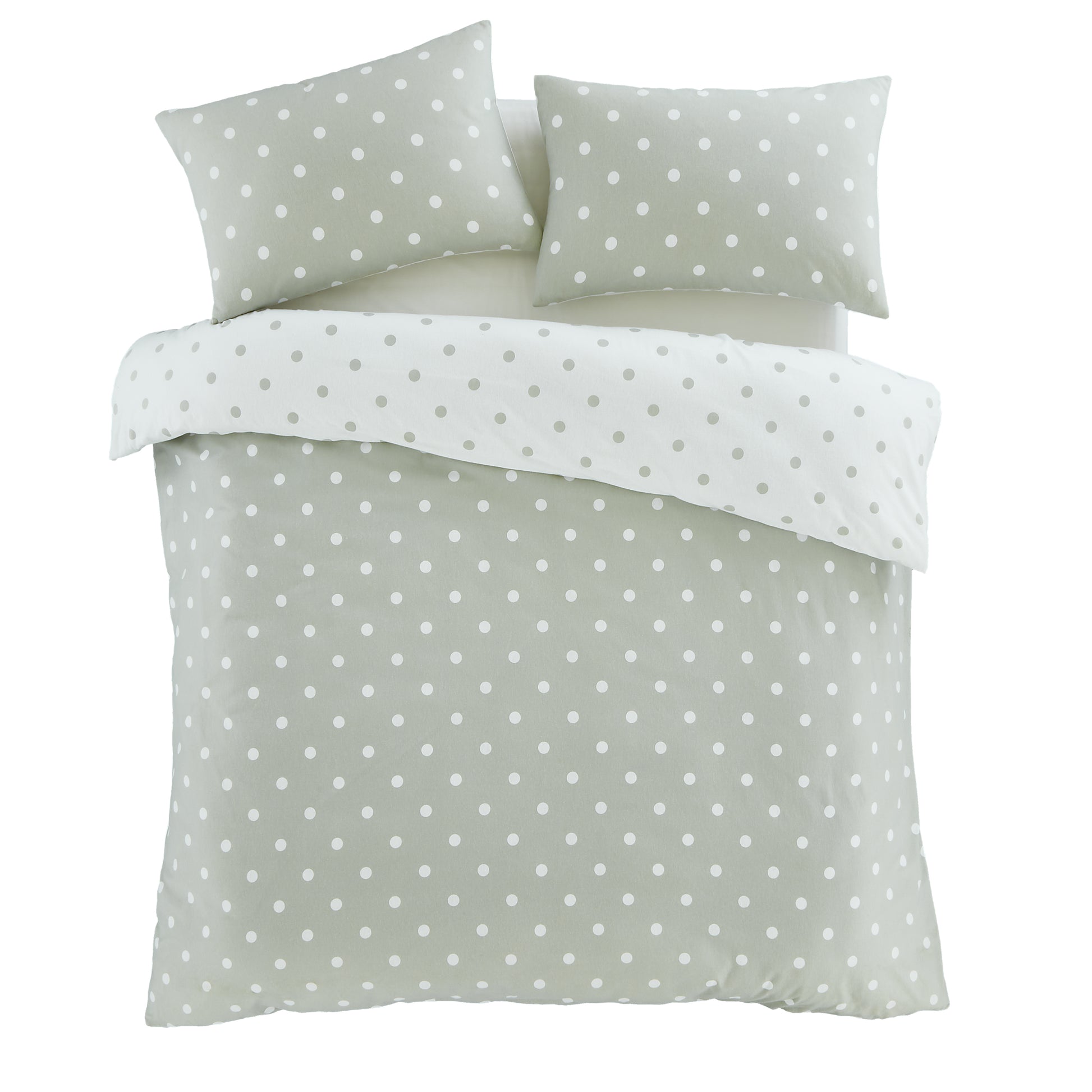 Catherine Lansfield Brushed Polka Dot Duvet Cover Set - Green