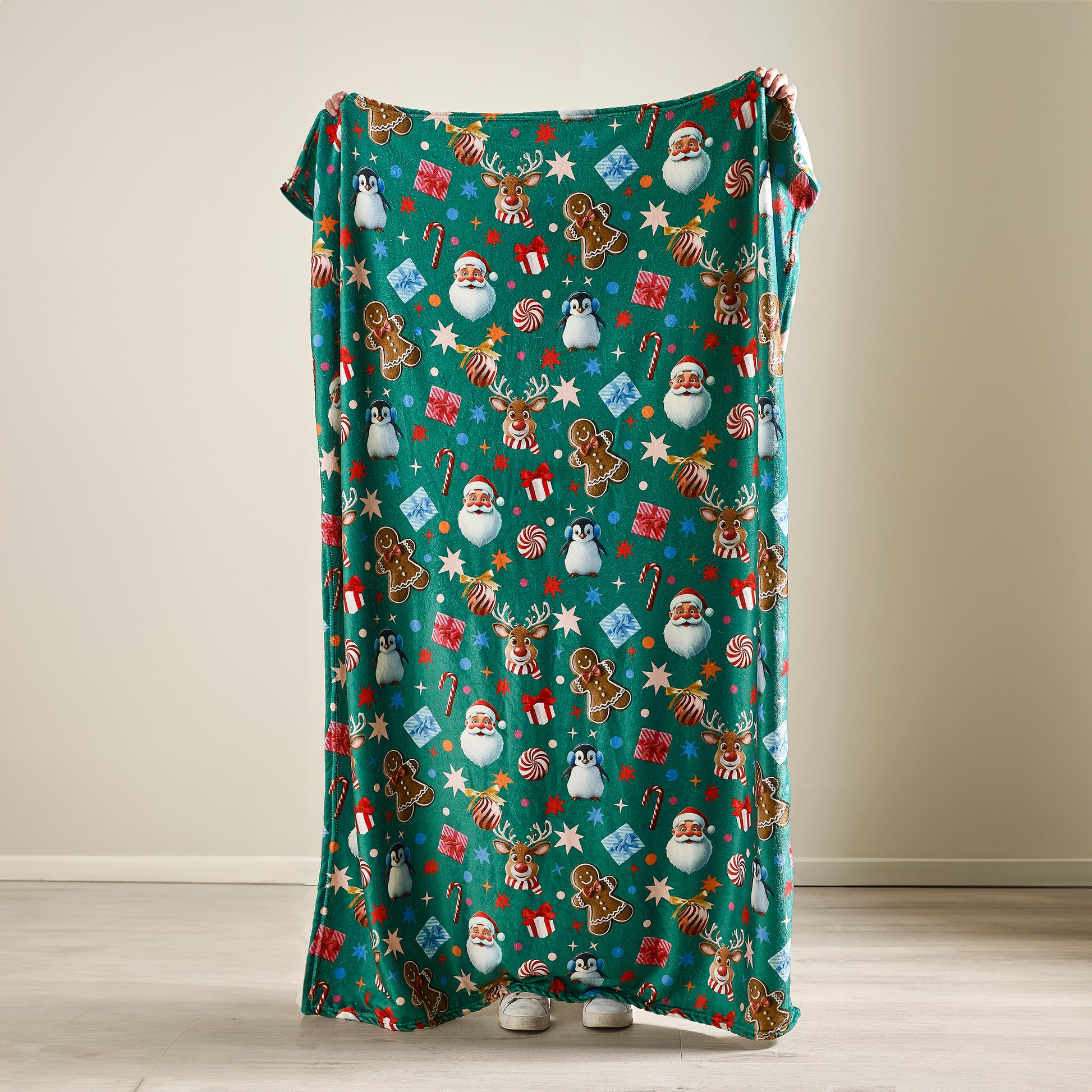 This cosy fleece throw showcases all your seasonal favourites, bringing a playful touch to your holiday décor.
