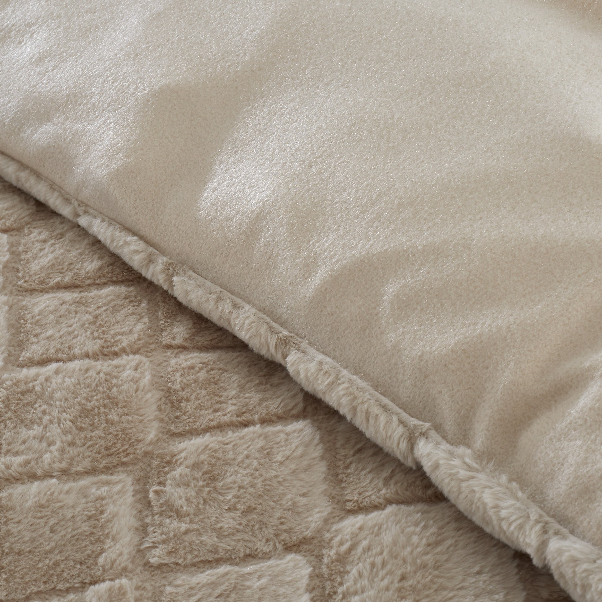 Indulge in luxurious comfort with our soft and cosy bedlinen featuring carved diamond shapes on a faux fur base.