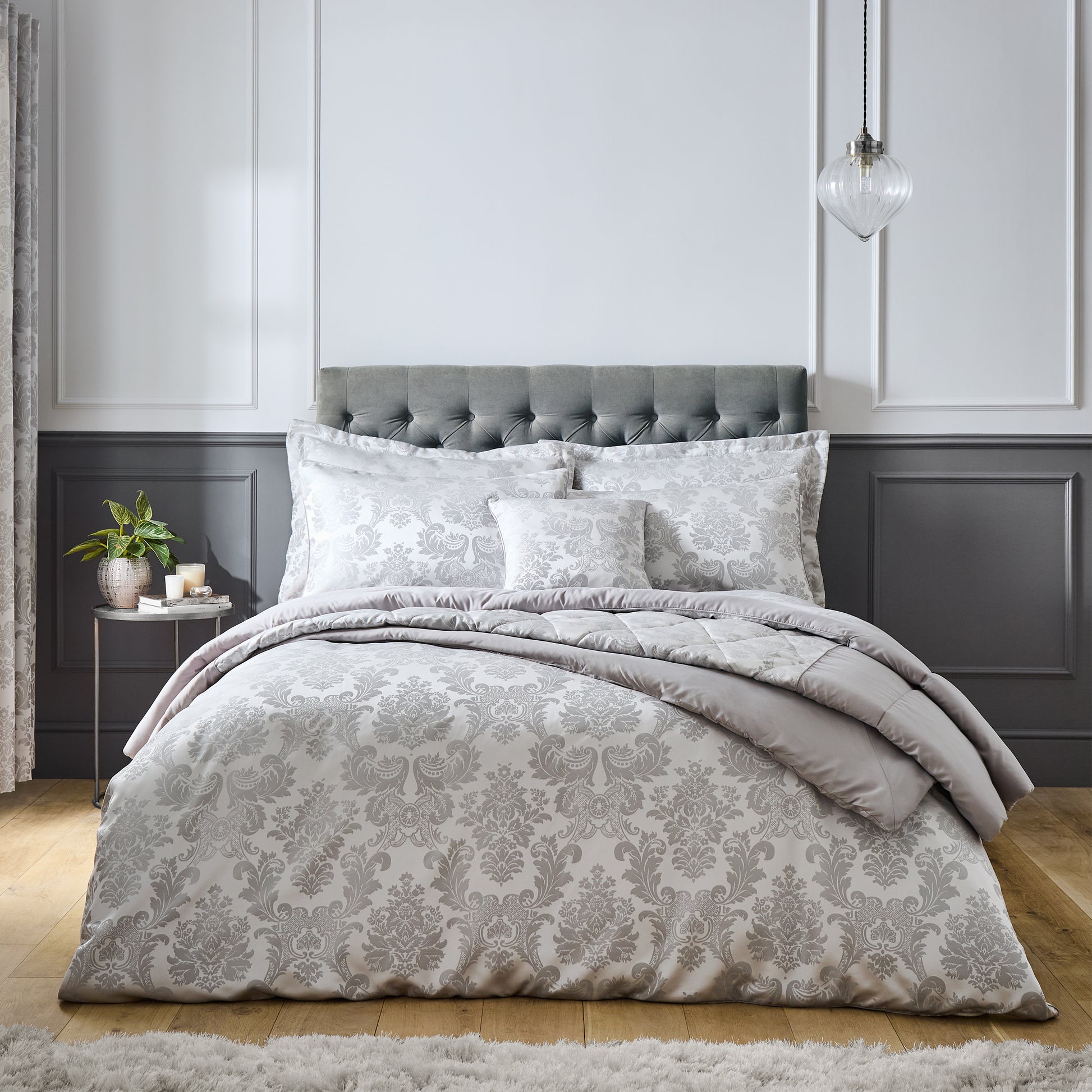 Catherine Lansfield Damask Jacquard Filled Cushion - Silver