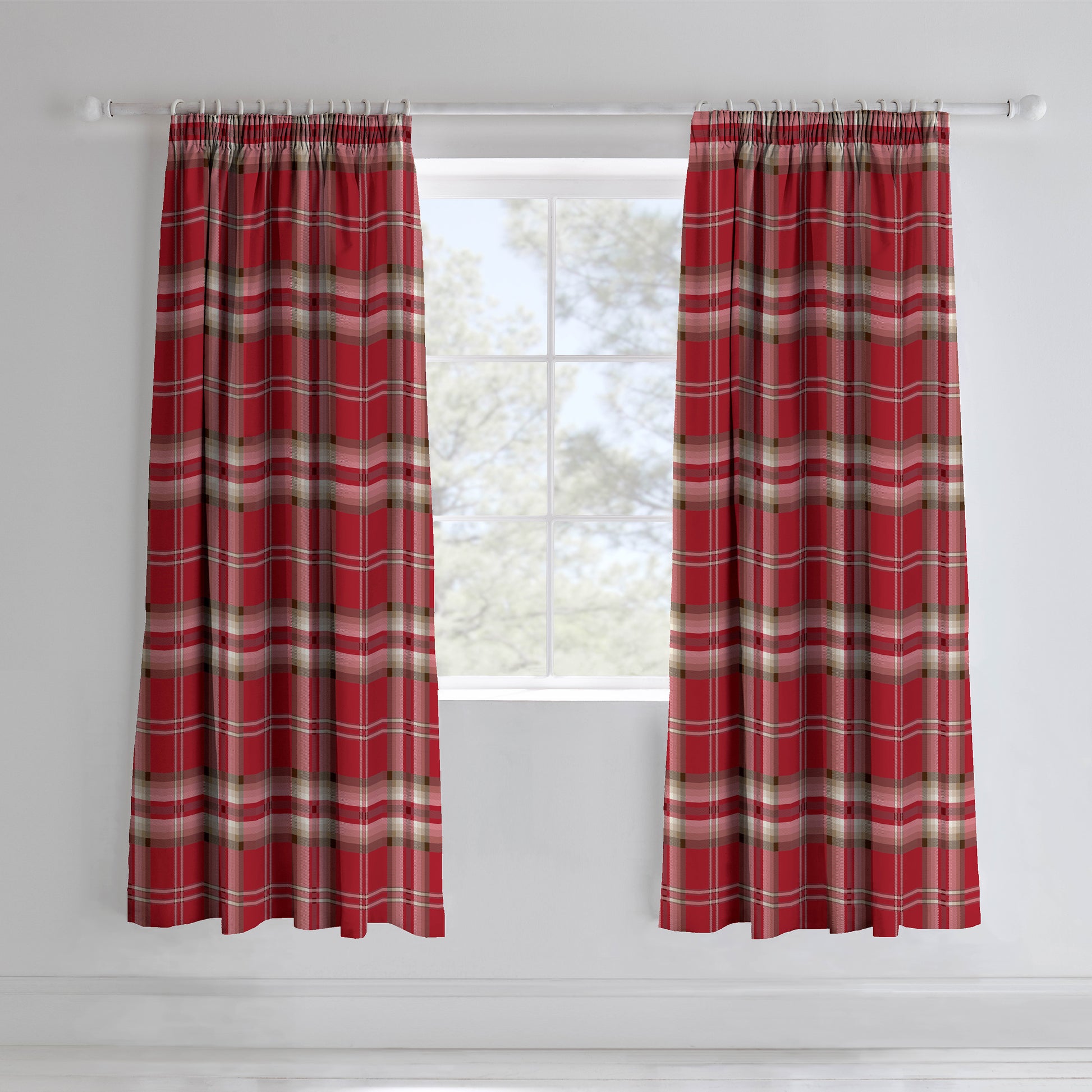 The Catherine Lansfield Kelso Red Pencil Pleat Curtains combine charcoal, natural and white in a check pattern, creating a cosy feel.