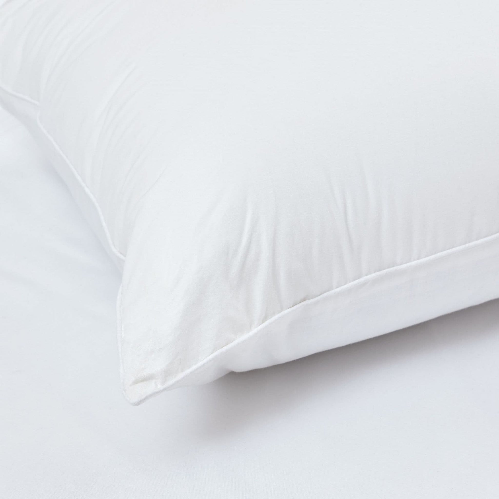 One side features supportive memory foam and the other is made from a super-soft hollowfibre filling.