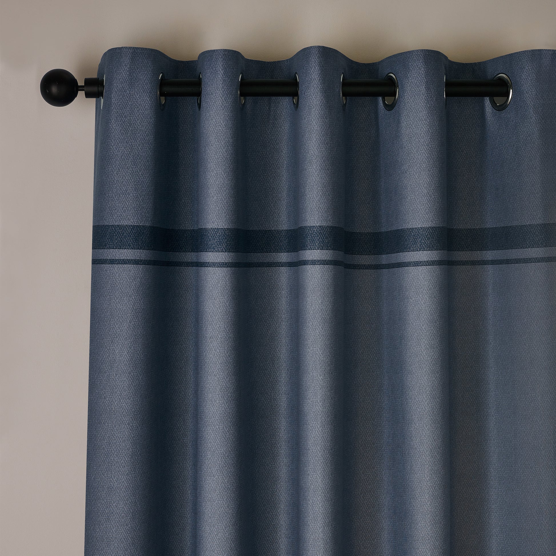A timeless curtain design. Muted tones with a sleek double stripe accent brings a clean and contemporary feel to any room.