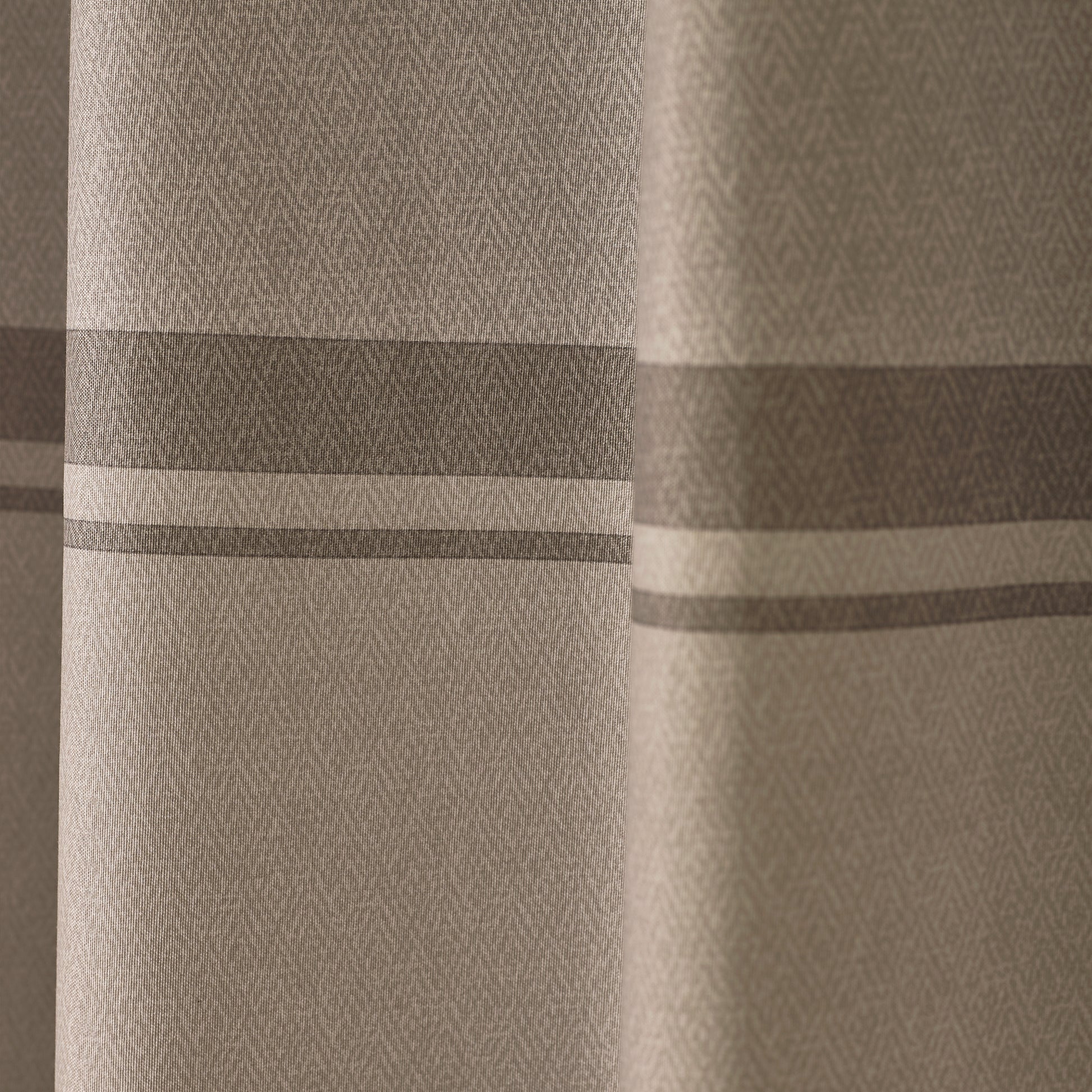 A timeless curtain design. Muted tones with a sleek double stripe accent brings a clean and contemporary feel to any room.