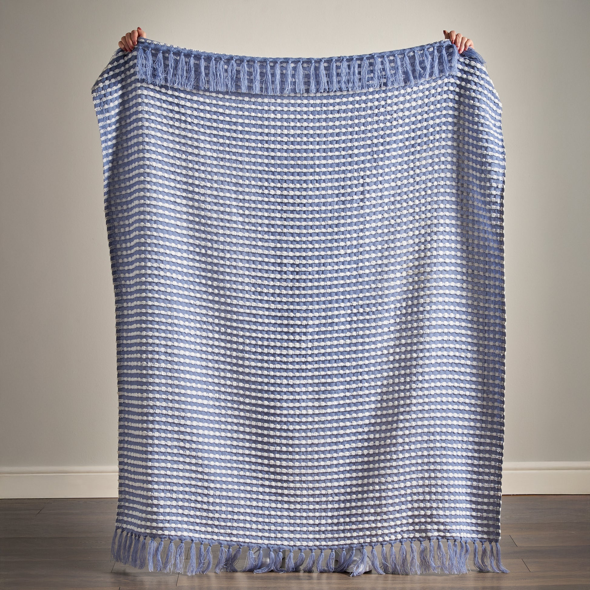 Update your home styling with this cosy stab stitch throw, finished with a tasselled edge for additional detailing.