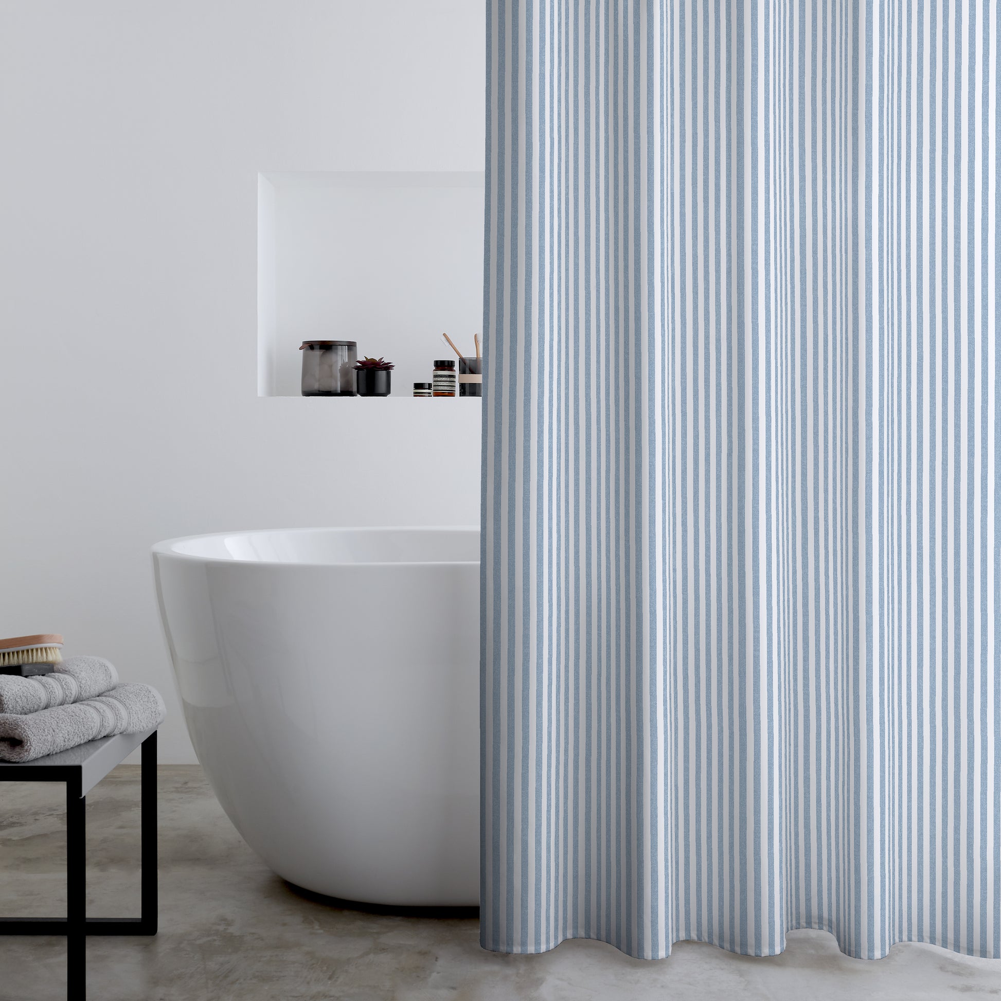 The Catherine Lansfield Timeless Stripe Blue shower curtain updates your bathroom with a stylish striped pattern.