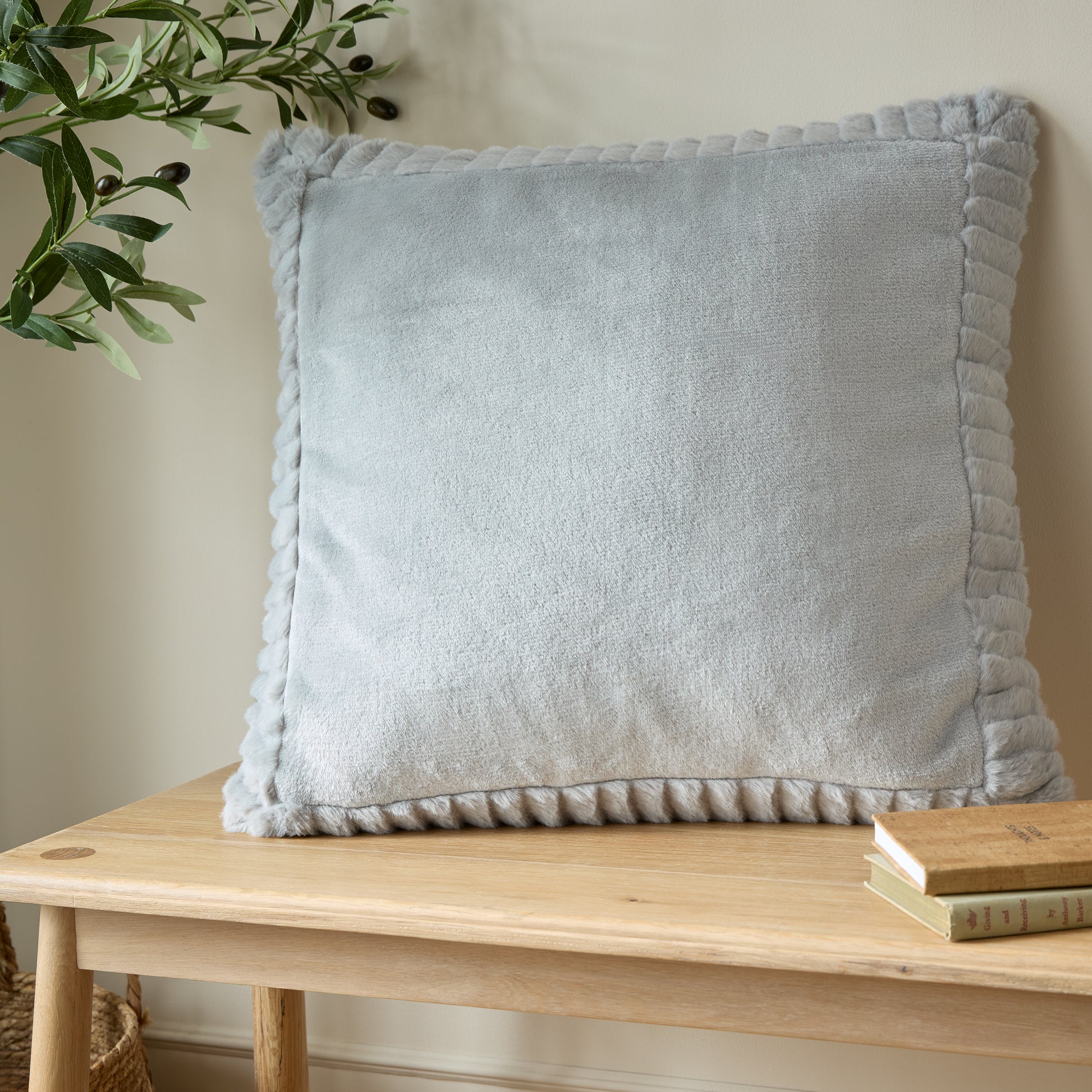 Catherine Lansfield Velvet And Faux Fur Filled Cushion - Silver