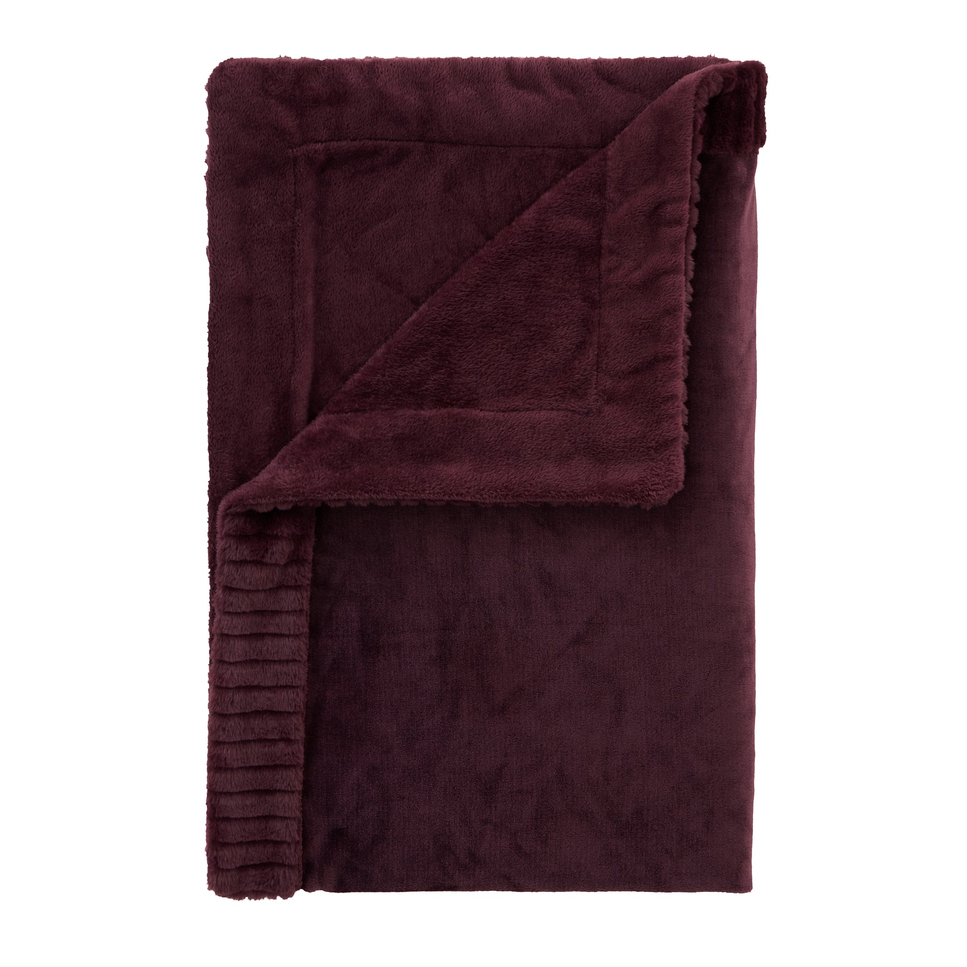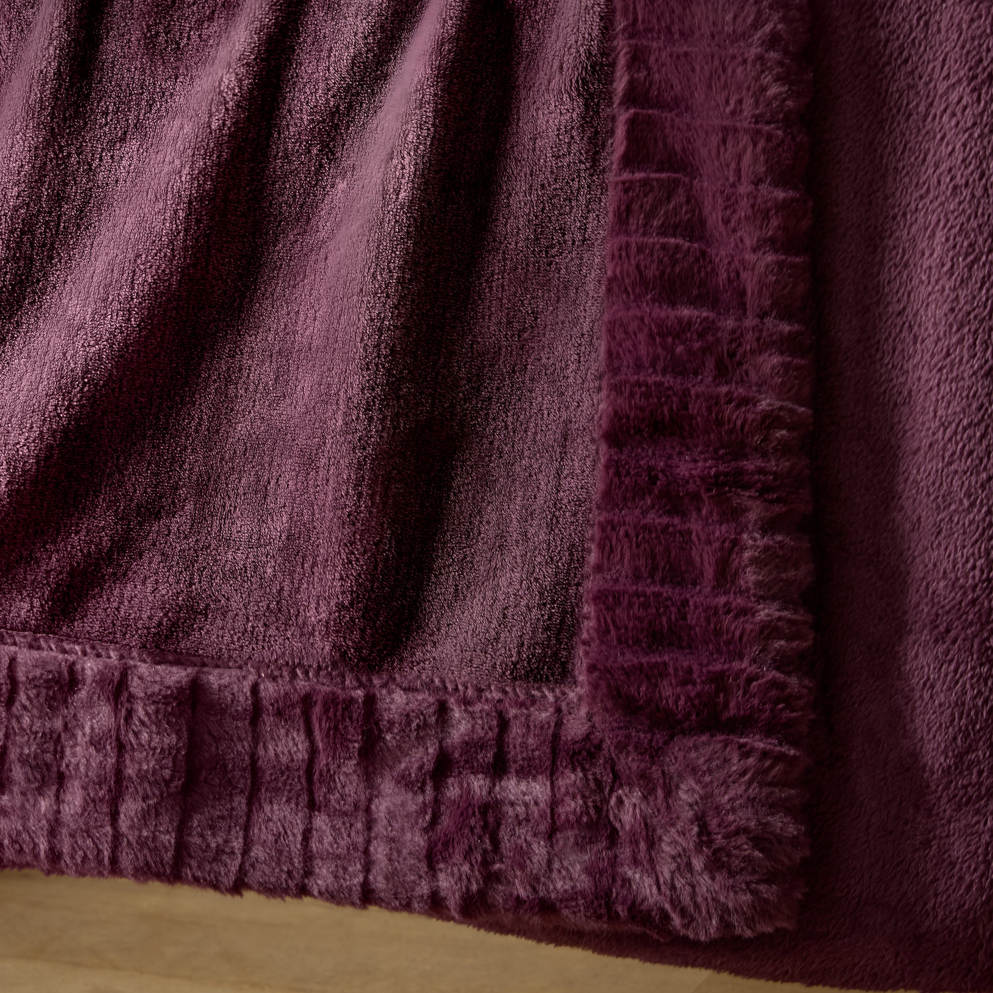 Catherine Lansfield Velvet And Faux Fur Throw - Plum