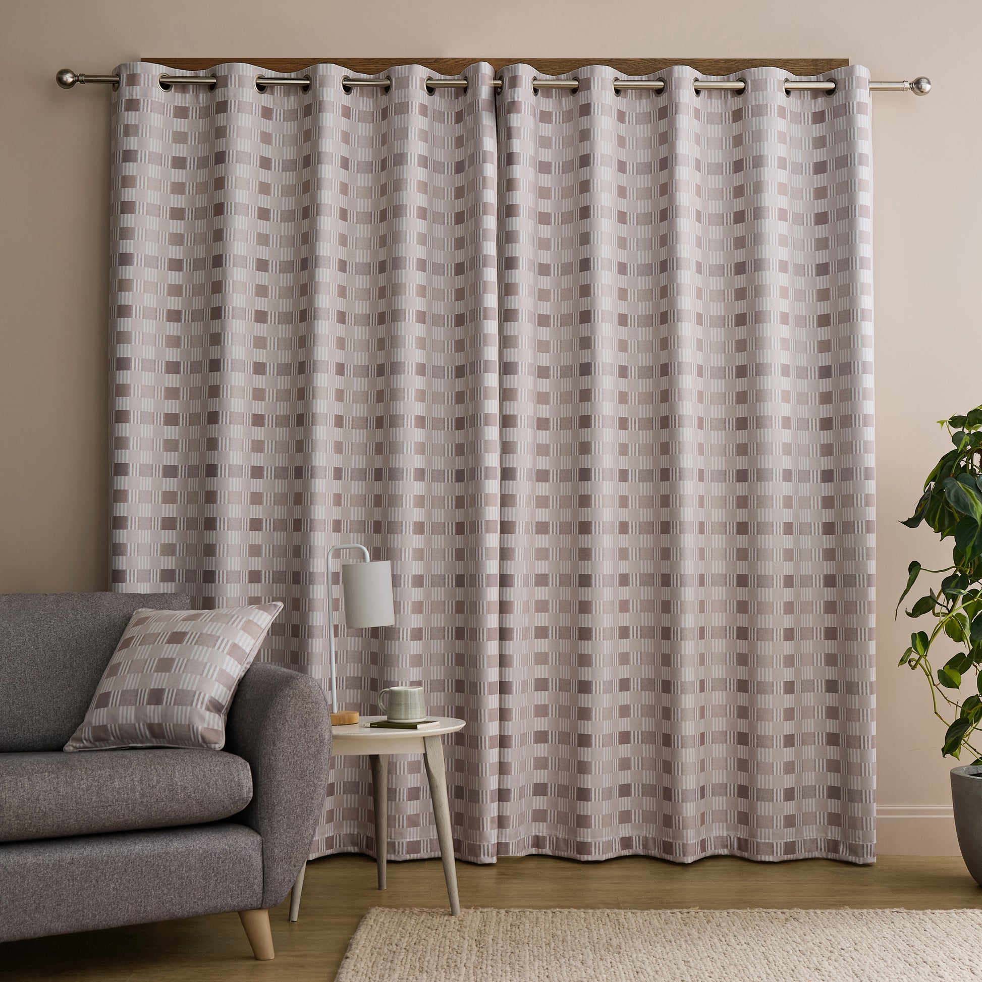 Catherine Lansfield Wilson Check Blackout Thermal Eyelet Curtains - Natural