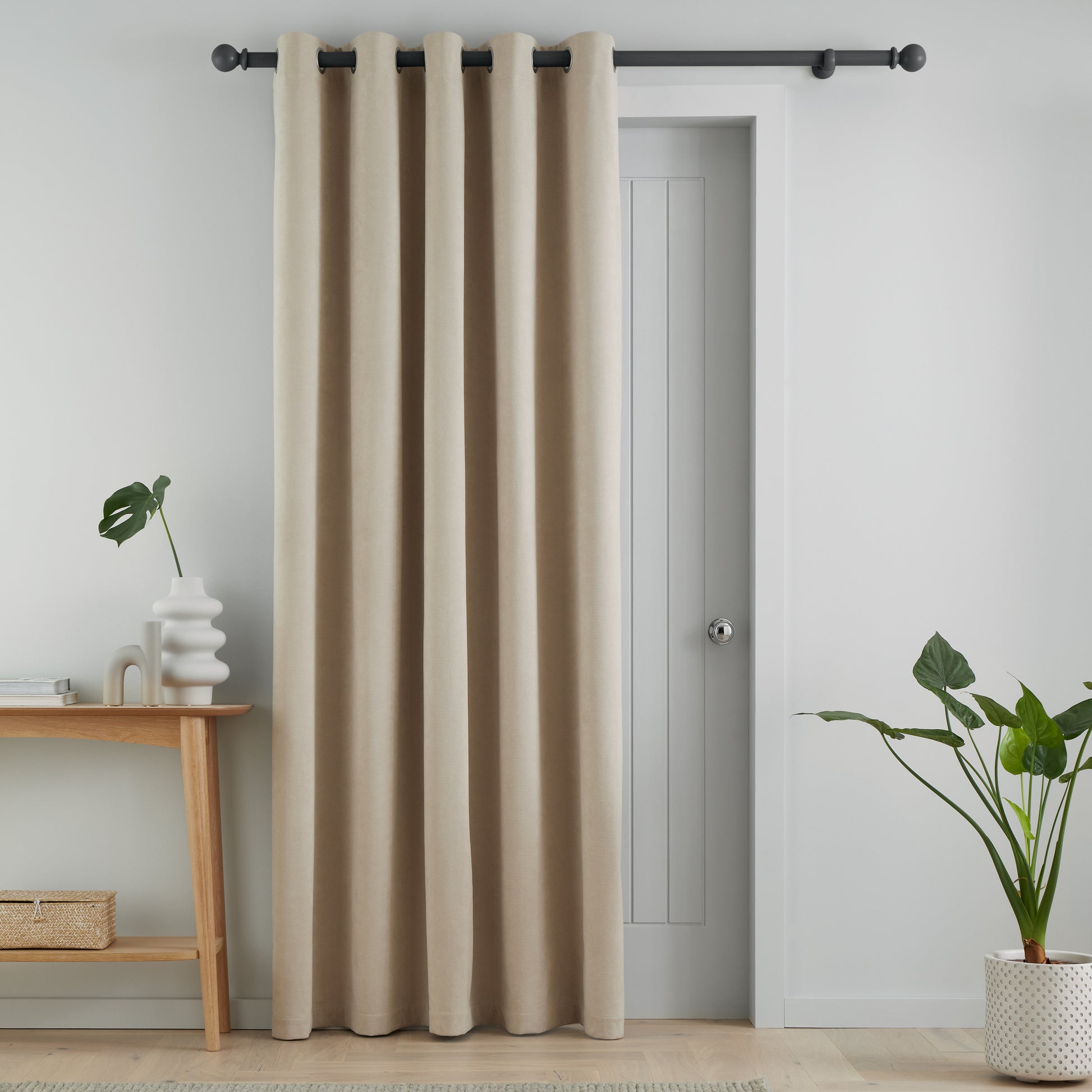 Catherine Lansfield Wilson Velvet Blackout Thermal Eyelet Door Panel Curtain - Natural