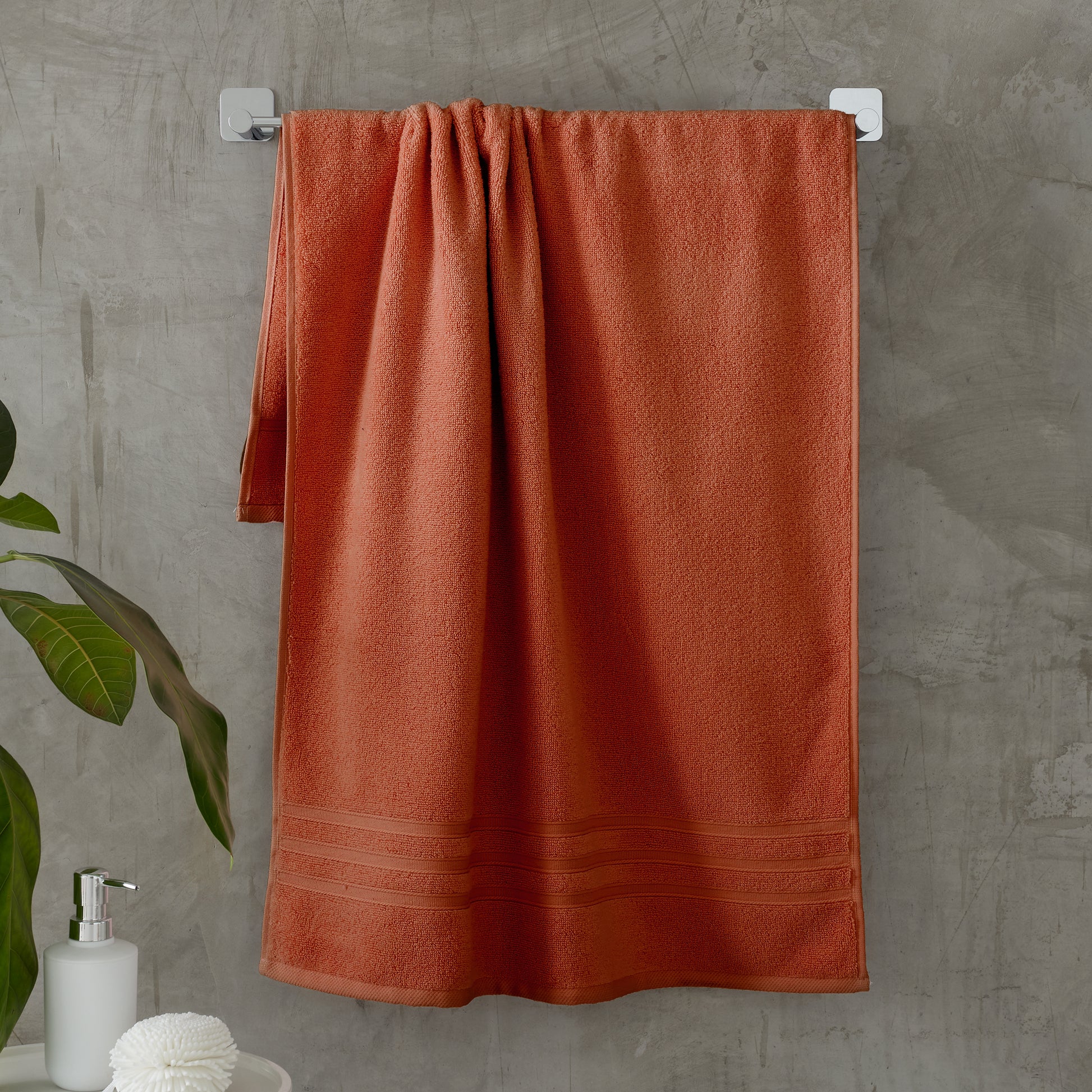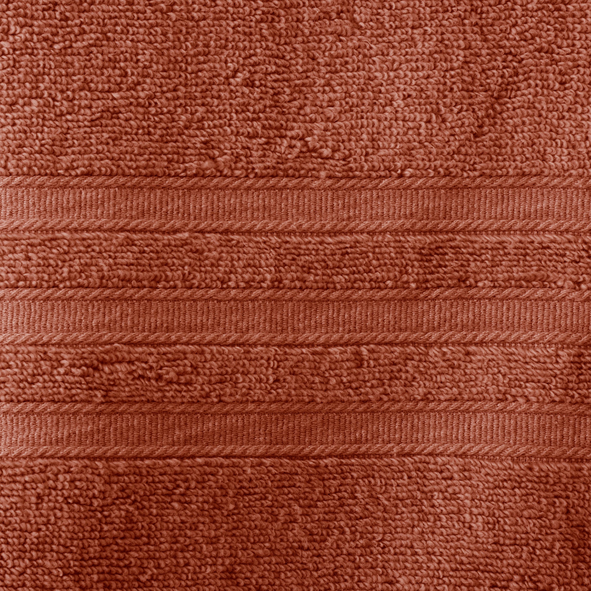 The Catherine Lansfield Zero Twist bath towels are available in a stylish Terracotta colour and are soft to the touch, super absorbent and feature a striped banded detail.