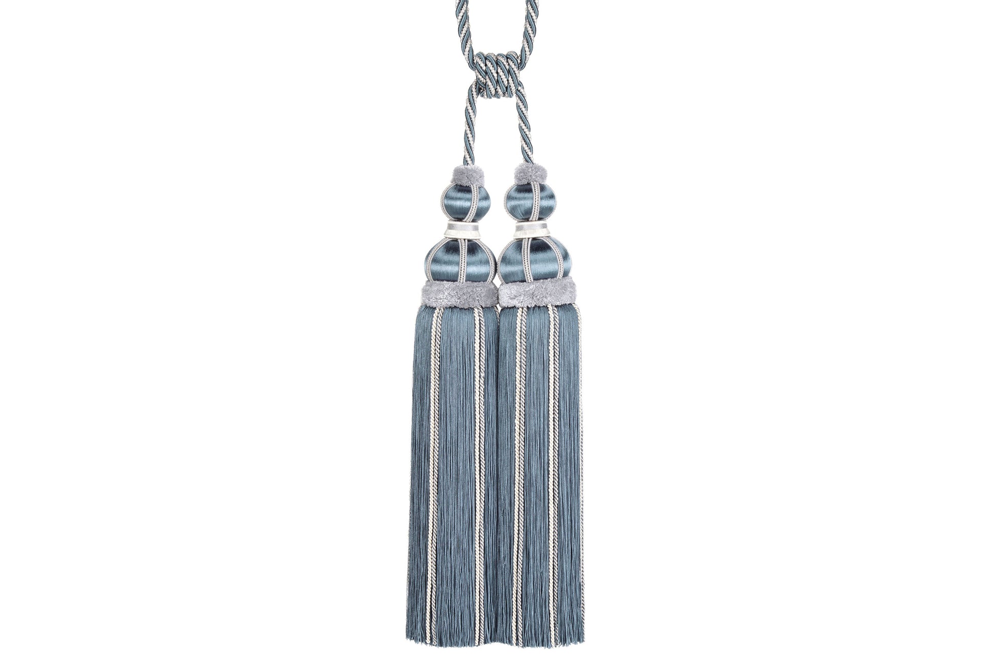 The Hallis Antoinette in Slate Blue is a delicately luxurious double tasselled tieback with classical inspirations.