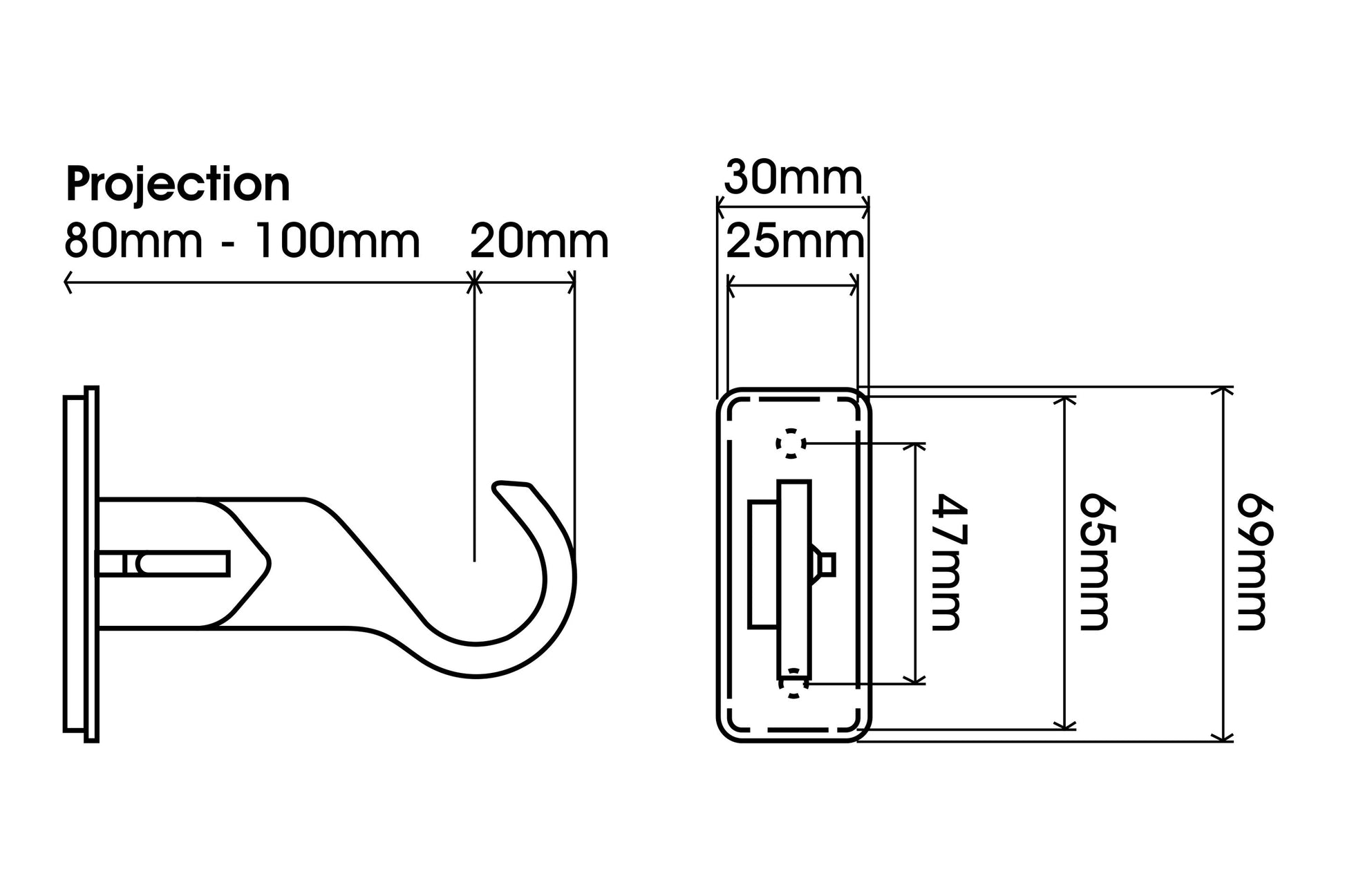 The Hallis Arc 25mm Extendable Metal Curtain Pole End Brackets are sold in singles and include all fixings.