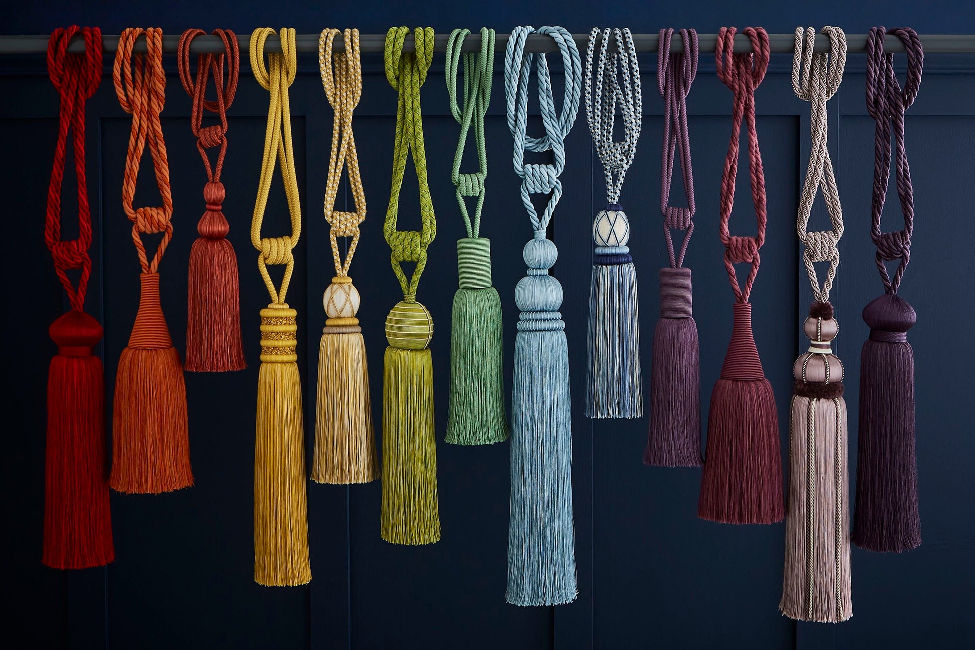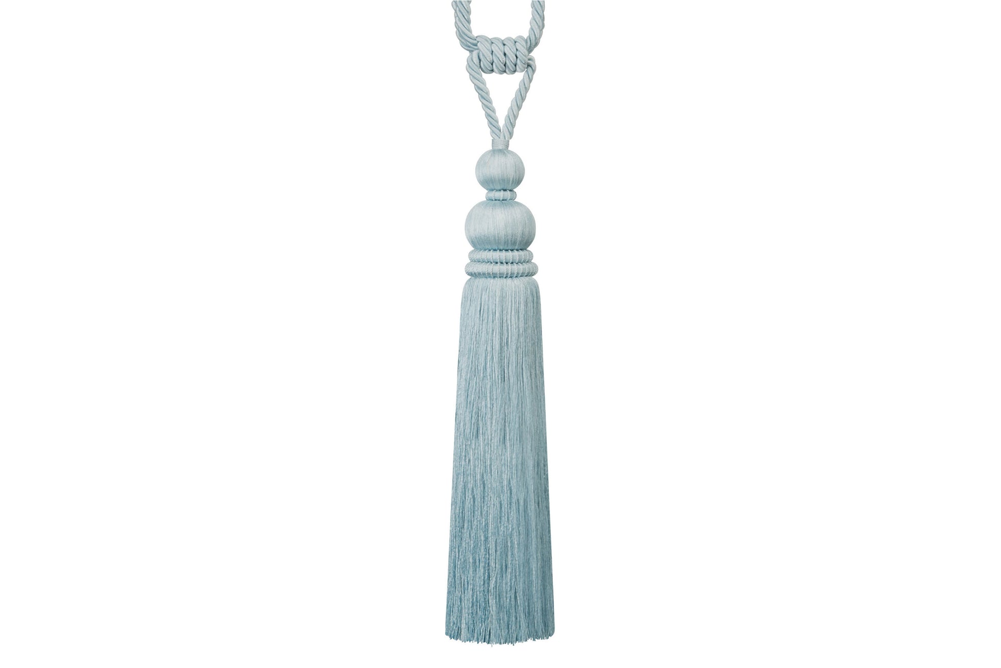 The Hallis Athena in Seaspray is a notable, statuesque tasselled tieback of generous proportions.
