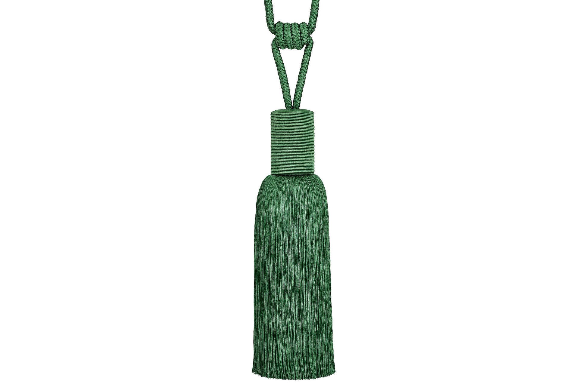 The Hallis Calypso in Forest is a simple, contemporary tieback with a drum inspired design and a luxurious short full skirt.