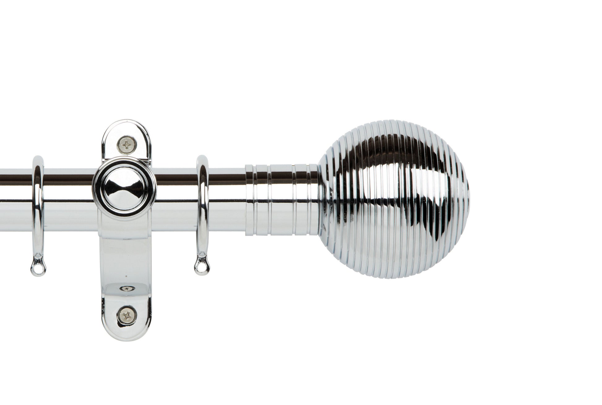 Hallis Galleria Metals Ribbed Ball 50mm Metal Curtain Pole - Chrome