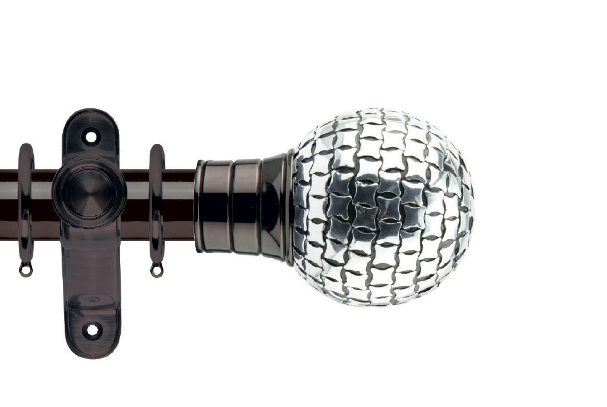 The Hallis Galleria Square Studded Ball is a premium quality handcrafted 50mm metal curtain pole with square bead encrusted ball shaped finials with a ribbed barrel design collar, and it is suitable for light to heavy curtain weights.