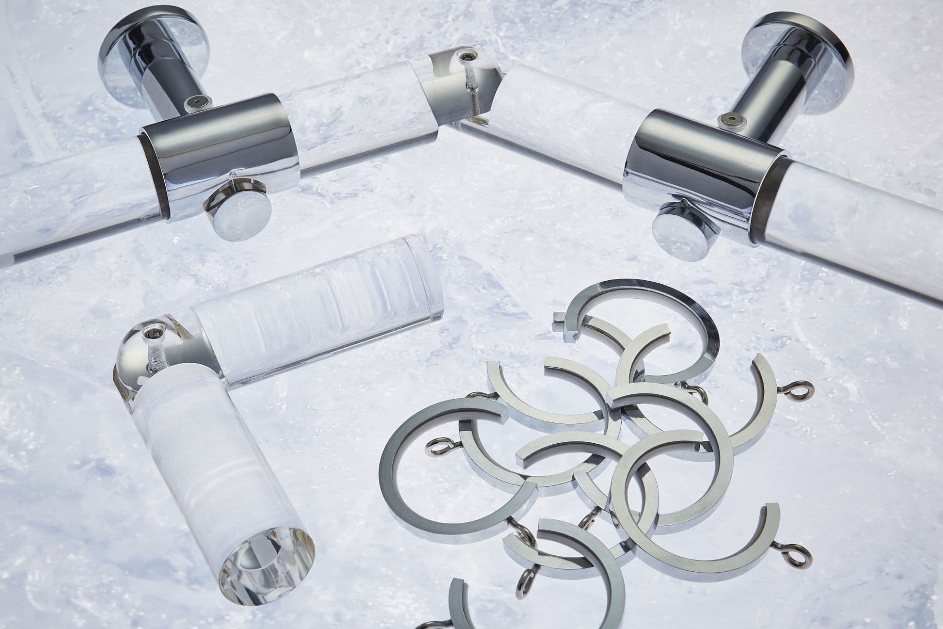 The Hallis Ice 35mm Metal Curtain Pole Extended Ceiling Brackets in Black Nickel are sold in singles and feature an extended projection compared to the standard bracket to clear obstacles.