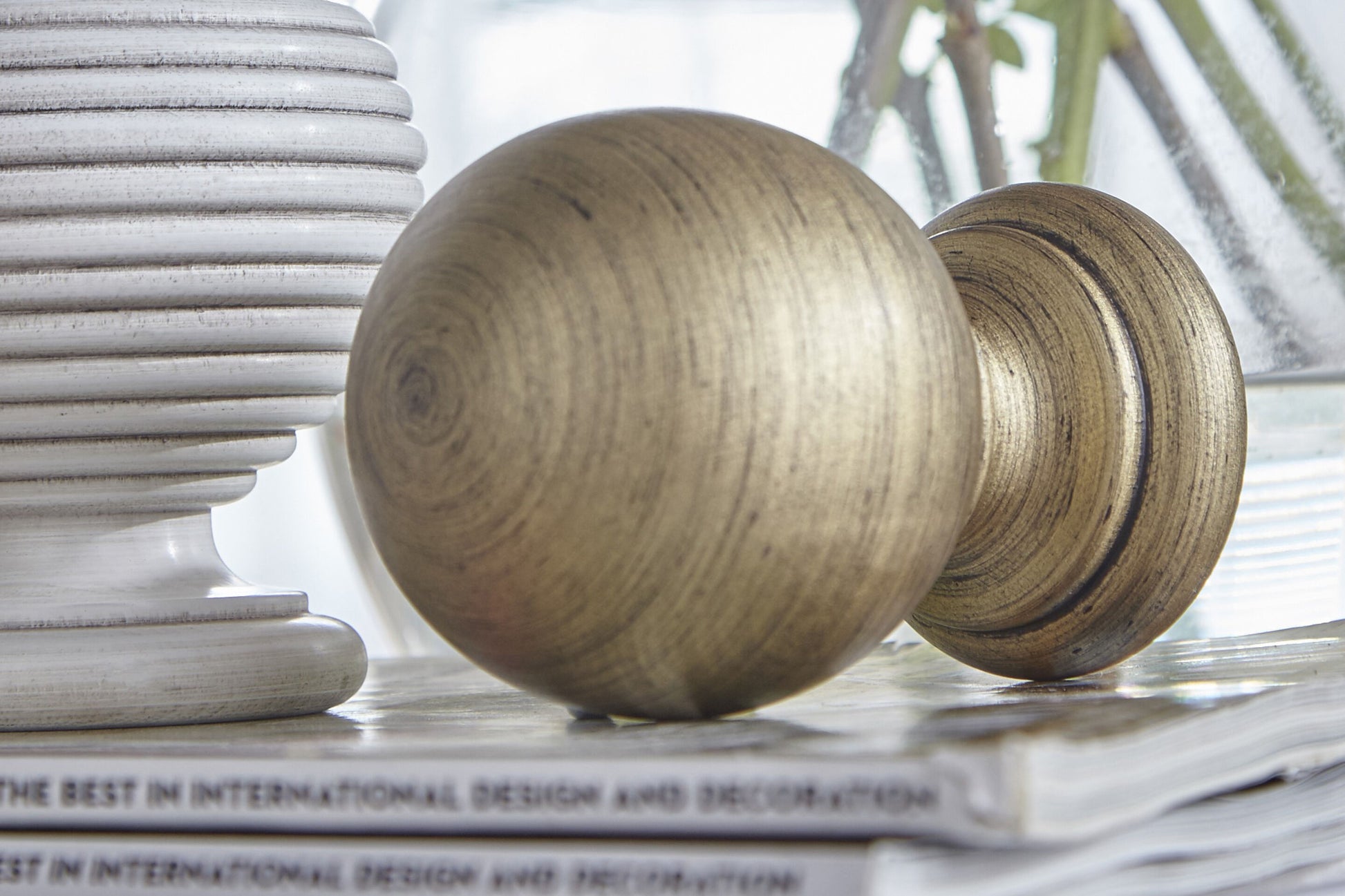 The Hallis Modern Country Ball 45mm Wooden Curtain Pole Finials in Gold Black are part of a stylish, hand painted and stained collection, which has a washed and waxed finish giving a modern country look.