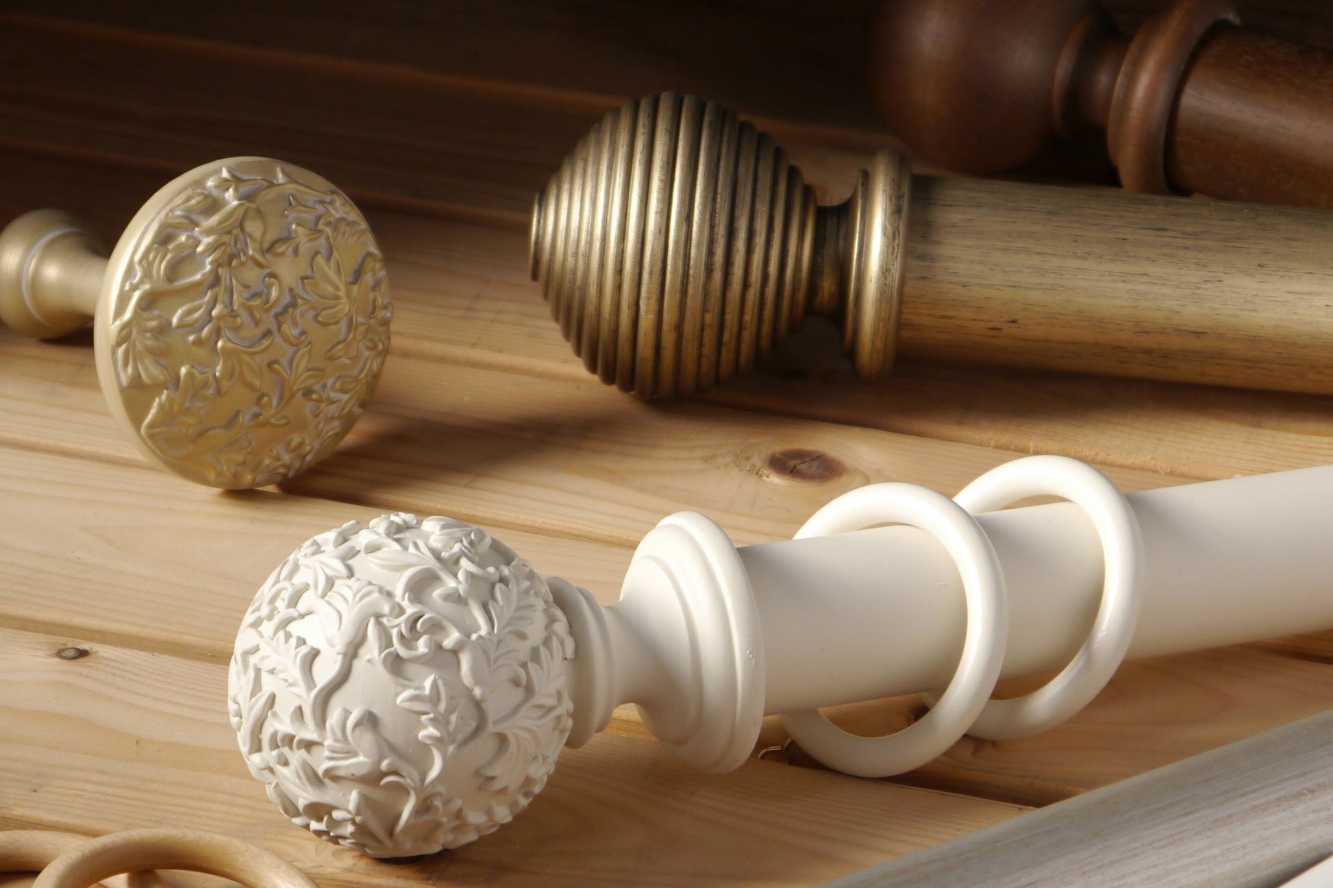 The Hallis Modern Country Ribbed Ball 45mm Wooden Curtain Pole Finials in Gold Black are part of a stylish, hand painted and stained collection, which has a washed and waxed finish giving a modern country look.