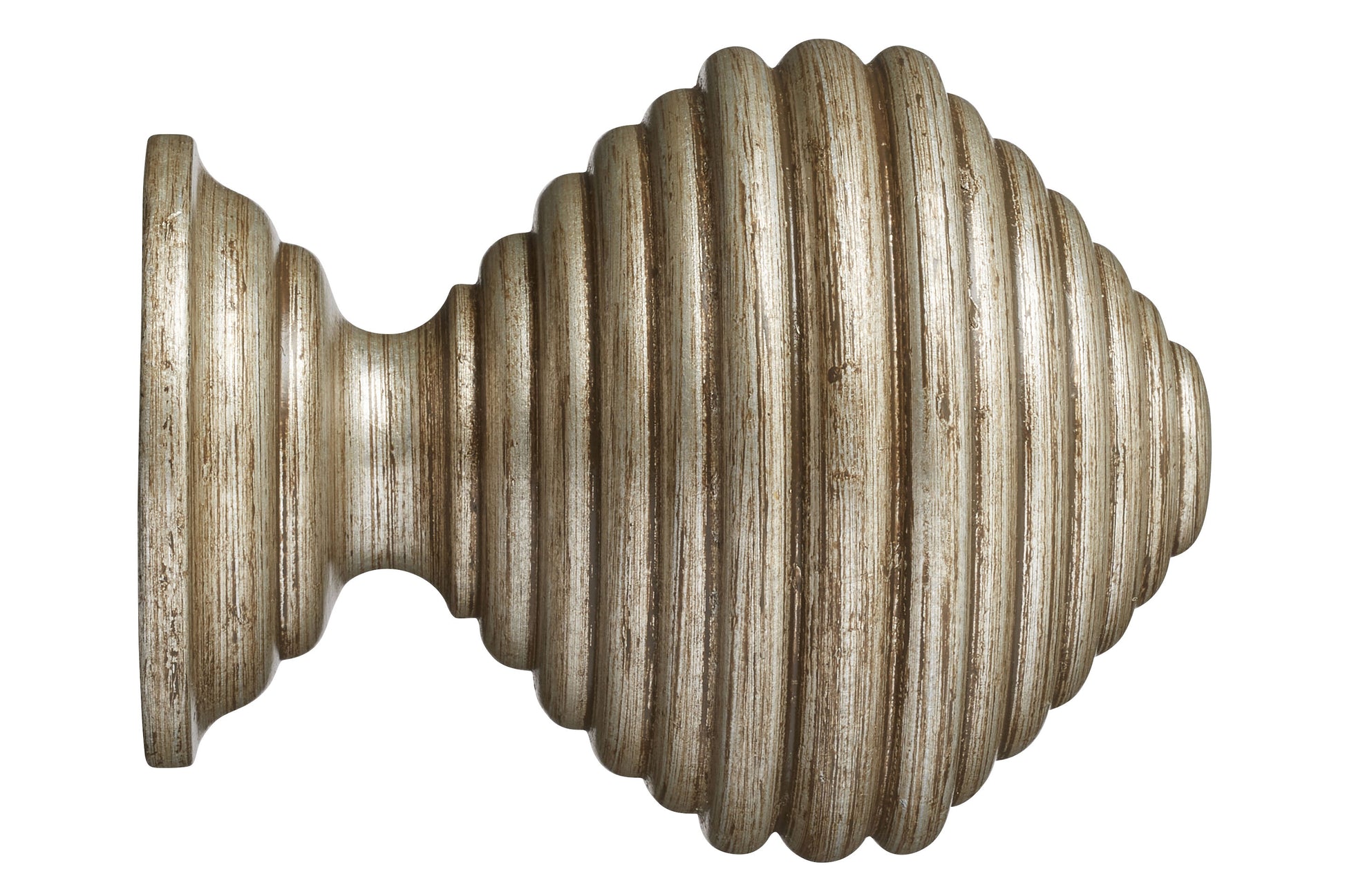 The Hallis Museum Dune 55mm Wooden Curtain Pole Finials in Antique Silver are sold as a single.
