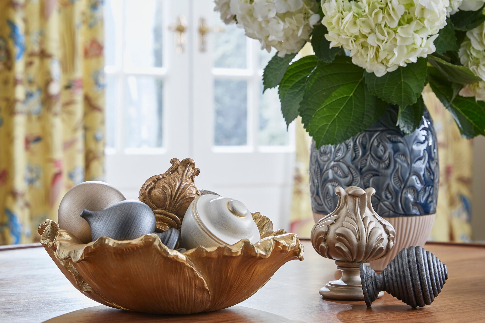 The Hallis Museum Florence 55mm Wooden Curtain Pole Finials in Antique Gilt are sold as a single.