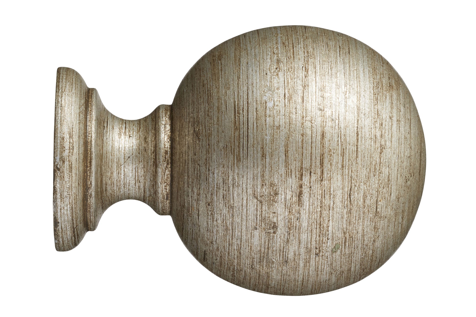 Hallis Museum Plain Ball 35mm Wooden Curtain Pole Finial - Antique Silver
