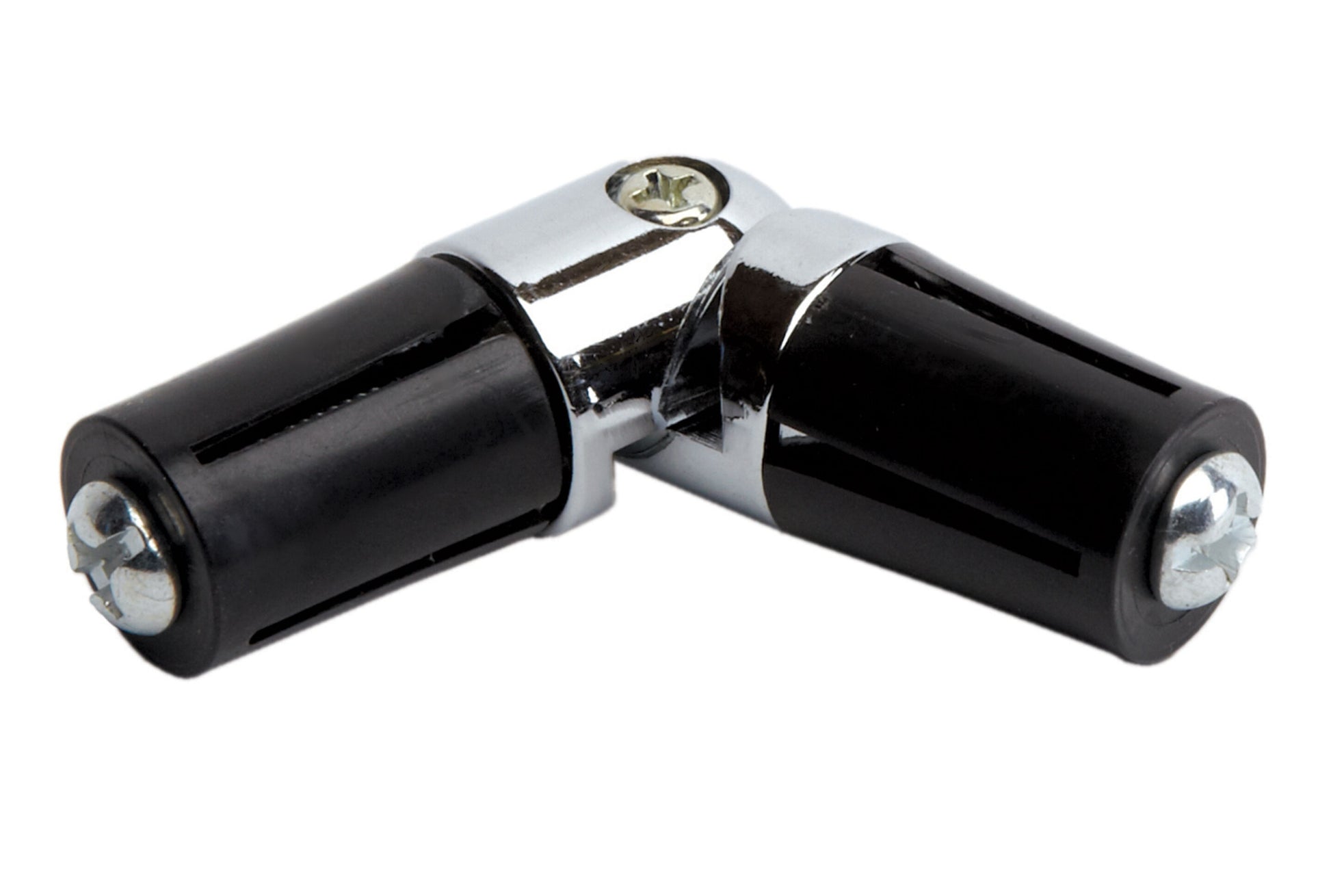 The elbow style joint enables two piece of curtain pole to be attached to create a corner with an angle between 90 degrees to 180 degrees.