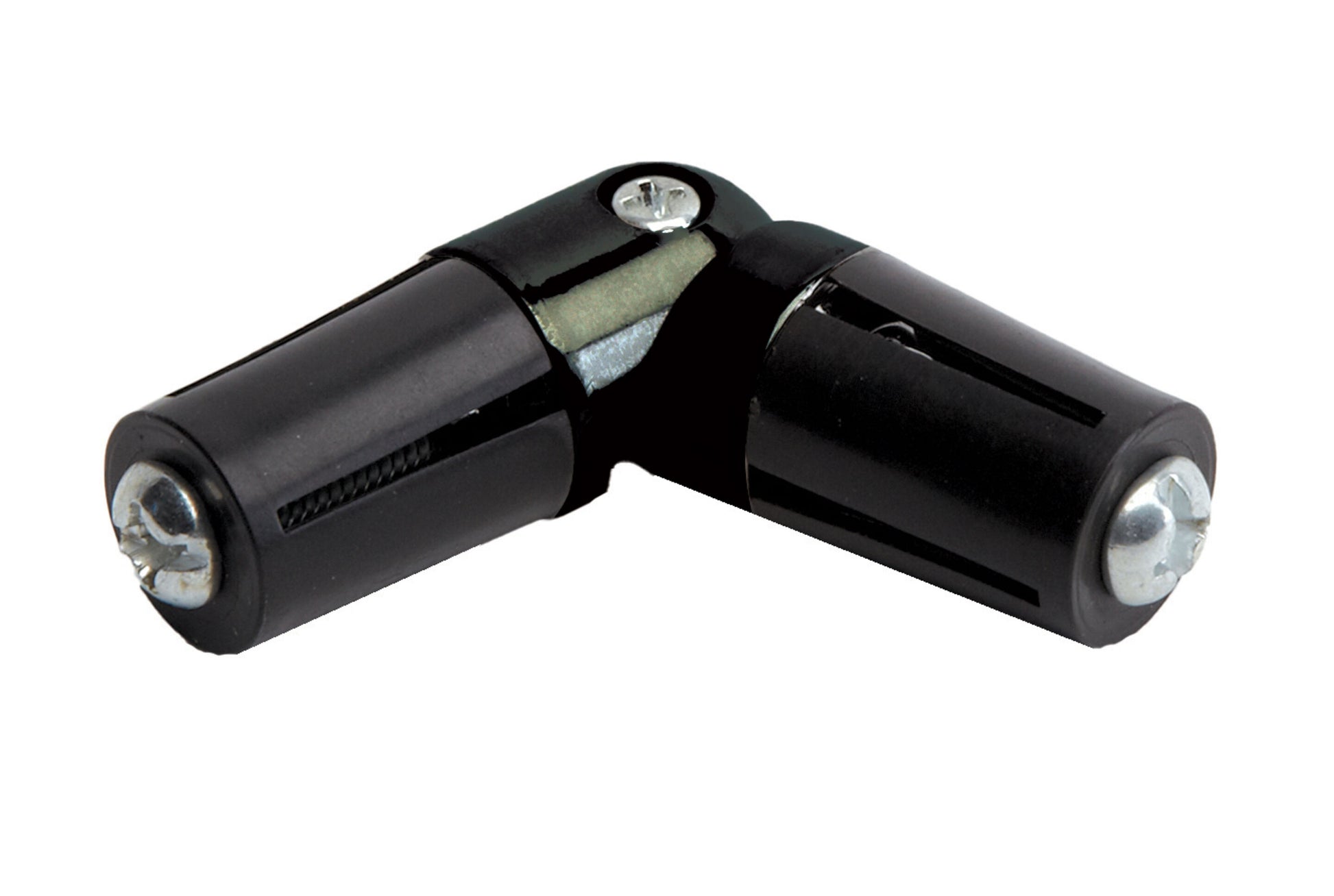 The elbow style joint enables two piece of curtain pole to be attached to create a corner with an angle between 90 degrees to 180 degrees.