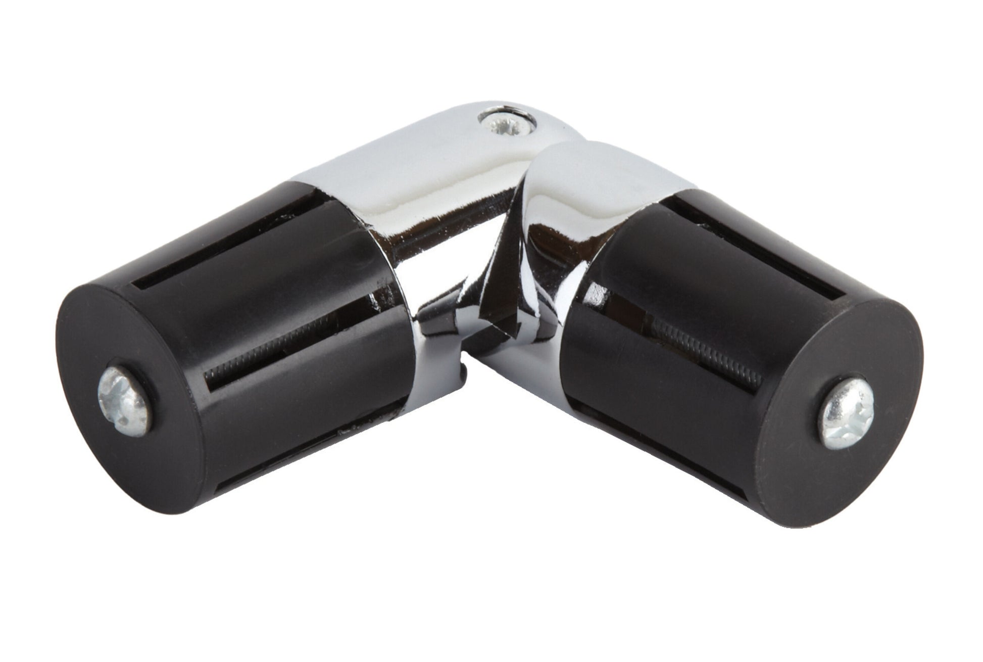 The elbow style joint enables two piece of curtain pole to be attached to create a corner with an angle between 90 degrees to 180 degrees.