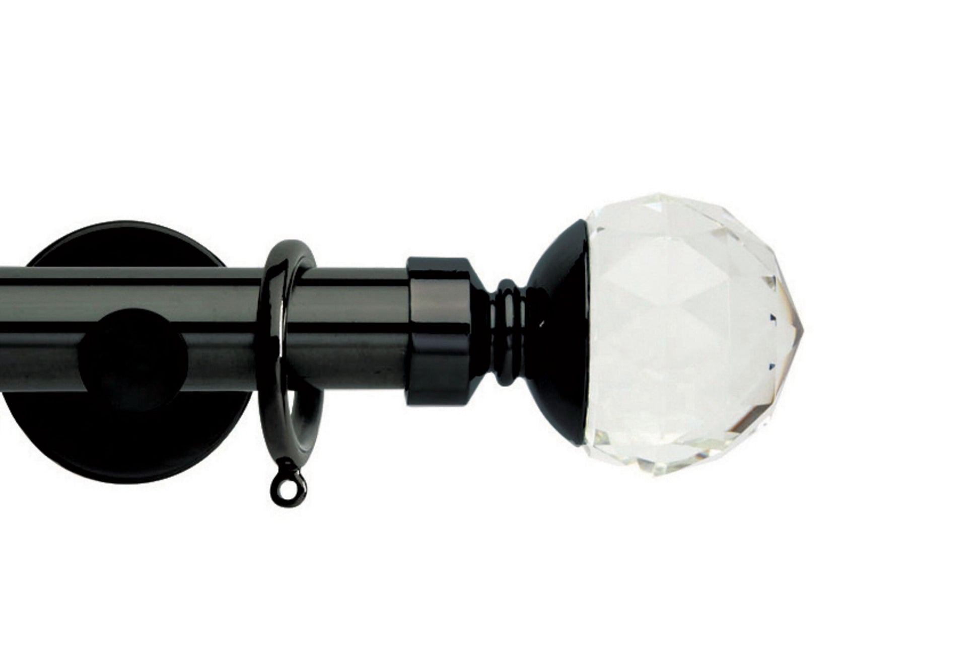 Hallis Neo Premium Clear Faceted Ball 28mm Metal Curtain Pole (Cylinder Brackets) - Black Nickel