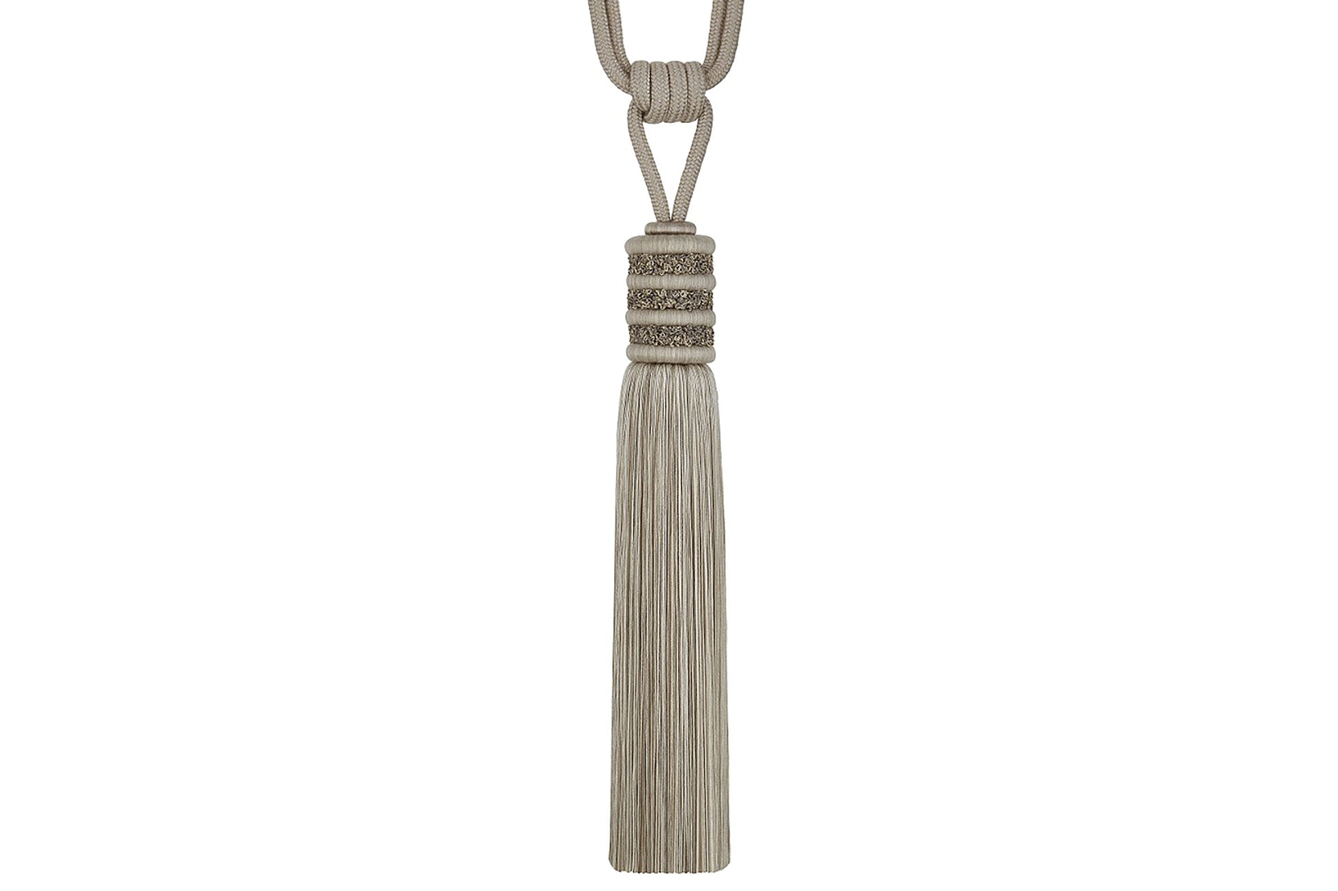 The Hallis Opulent in Bisque is a delicately detailed tasselled tieback with classical inspirations.