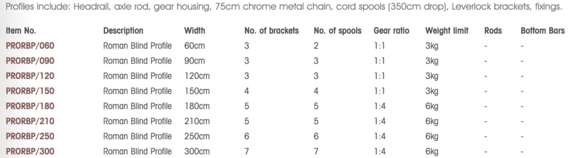 The profile kit is supplied with all of the headrail components of a roman blind kit, making it a cost effective option if you already have the components of the blind itself.