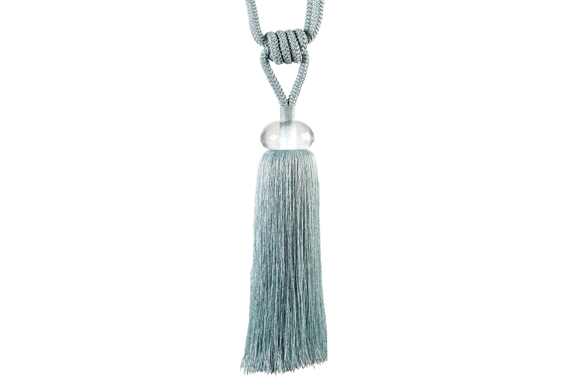 The Hallis Sonata in Duck Egg is a tasselled tieback with a simple design and long skirt.