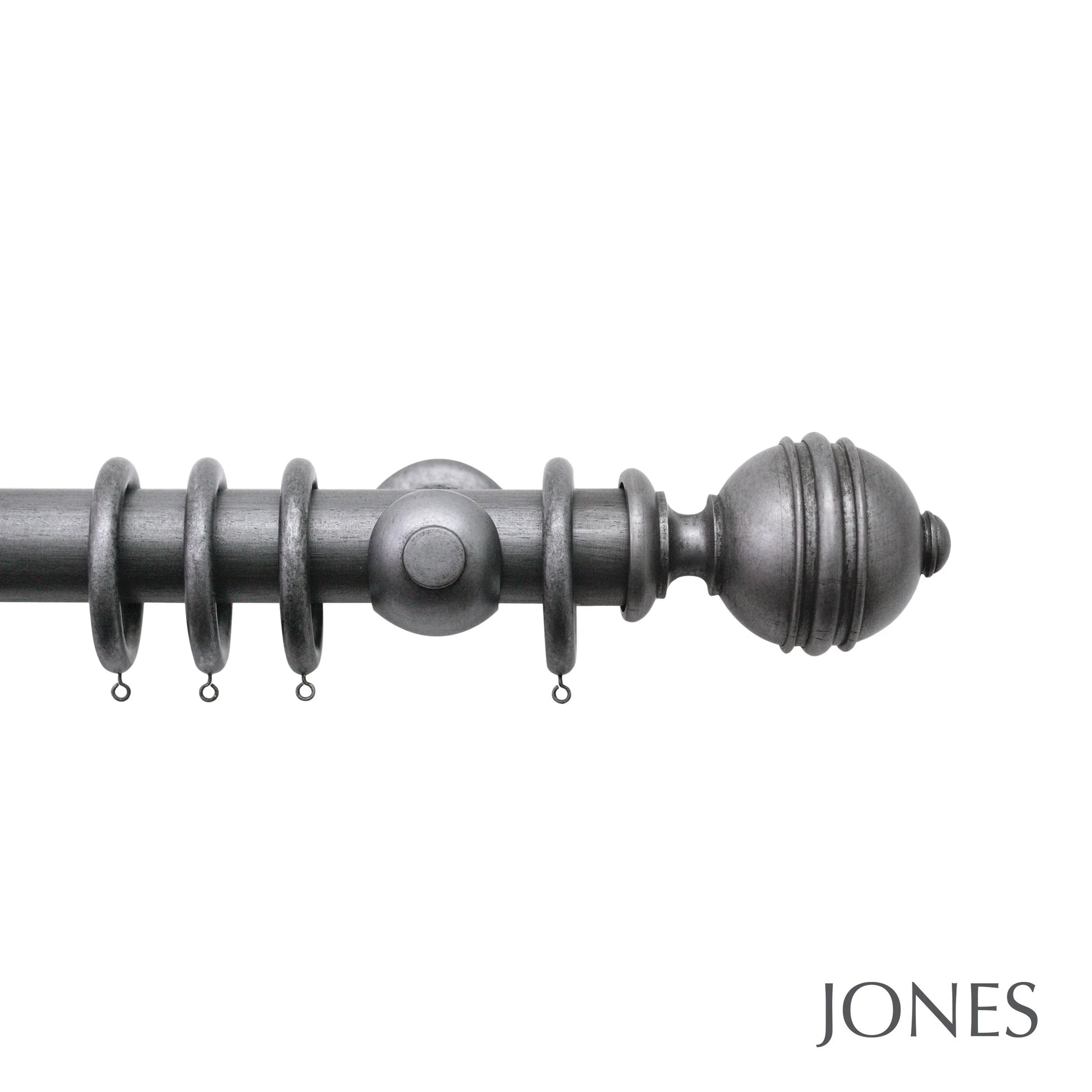 Jones Florentine Ribbed Ball 48mm Wooden Curtain Pole - Pewter