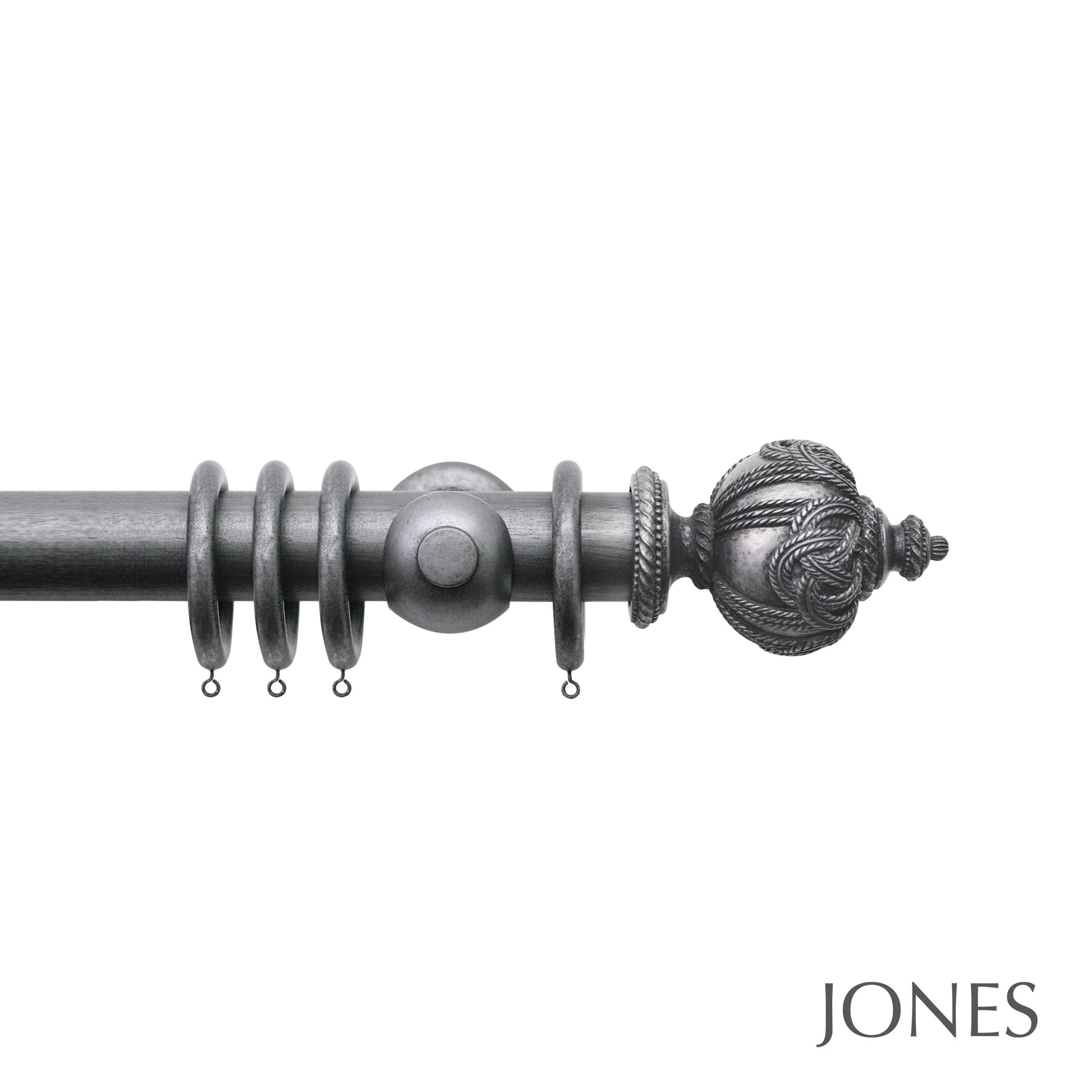 Jones Grande Rope 63mm Wooden Curtain Pole - Pewter