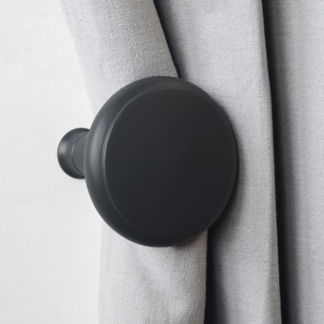 The Jones Shore Wooden Curtain Holdbacks in Black are a classic wooden holdback designed for the 35mm Shore pole collection.