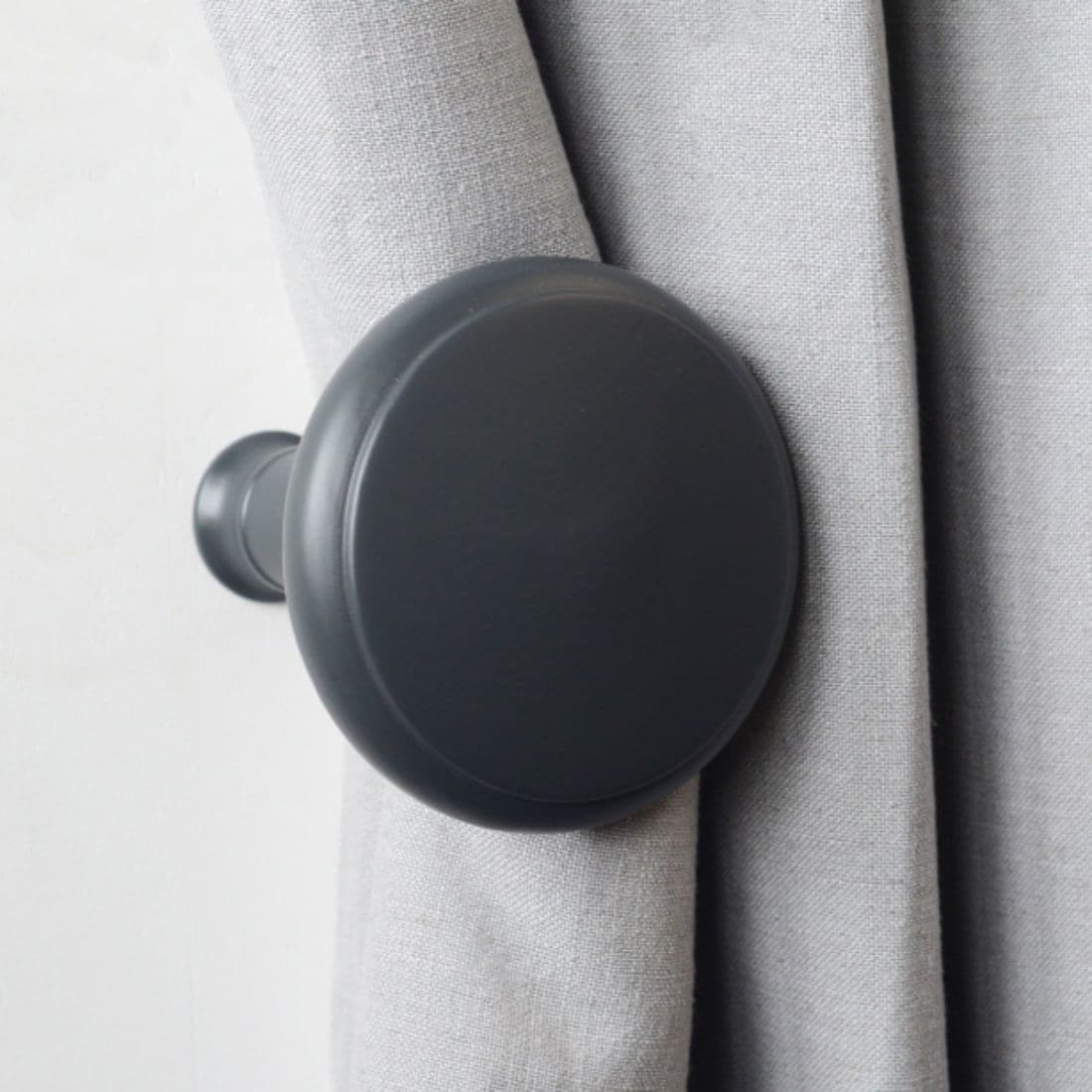 The Jones Shore Wooden Curtain Holdbacks in Charcoal are a classic wooden holdback designed for the 35mm Shore pole collection.