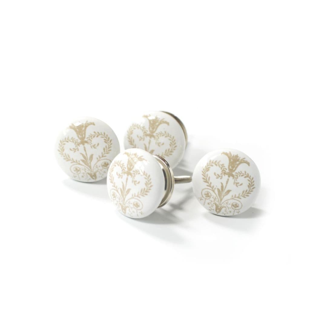 Add a touch of French glamour to new and existing furniture with these elegant ceramic pulls with a polished metal base.