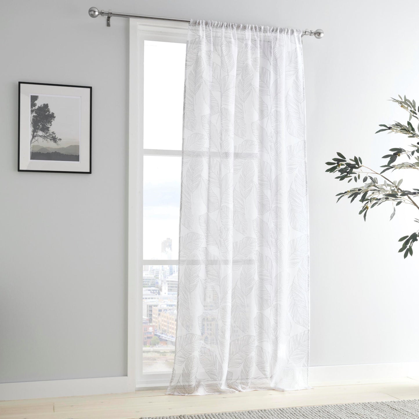 Featuring a beautifully designed leaf print in a soft grey colour on an soft white ground shade, this elegant single voile panel is perfect for bringing a touch of glamorous style to your home. The voile panel is perfect for improving privacy while allowing natural light to enter your home and is crafted with a slot top header for easy installation. Machine washable for convenient care.